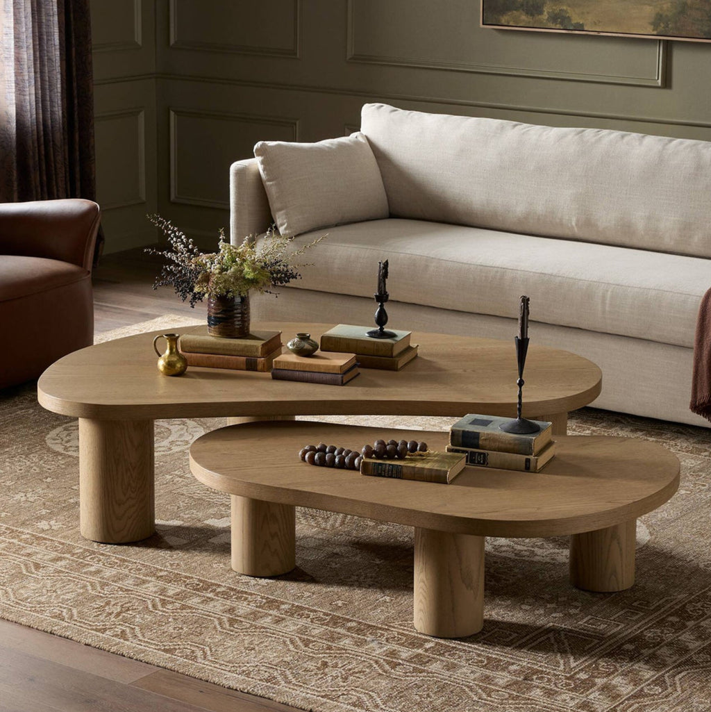 Classic kidney-shaped oak coffee tables bring shape and flexibility to your living space. Inspired by midcentury design, a light, natural finish mixes into into a range of collections with ease.