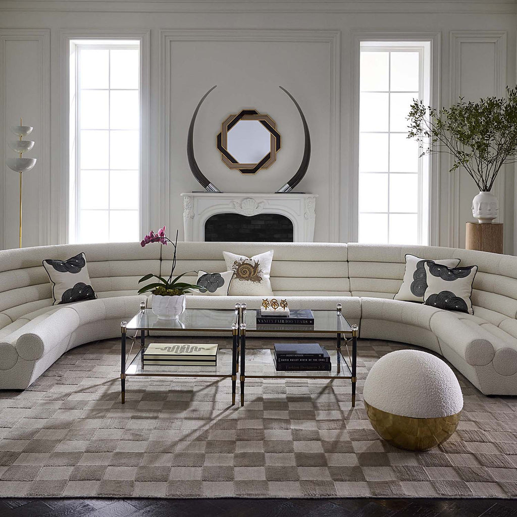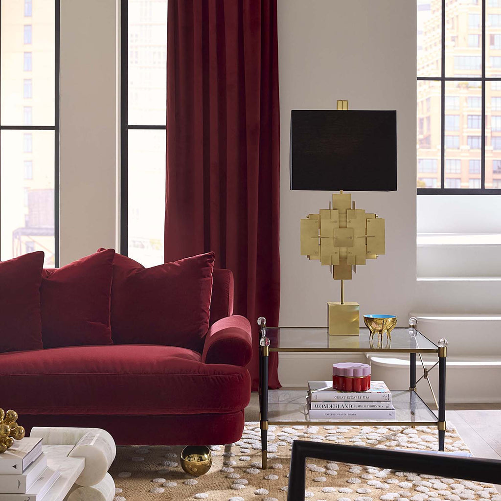 Our homage to French Empire style, Rider features leggy bases, chic sabots, and fabulous finials. Our Rider Two-Tier Cocktail Table’s blackened brass legs are accented with antiqued brass and capped with luminous acrylic orbs that add more than a dash of drama. A second shelf creates plenty of space for storing and styling your favorite books and baubles. The perfect size to pair with an oversized sectional.