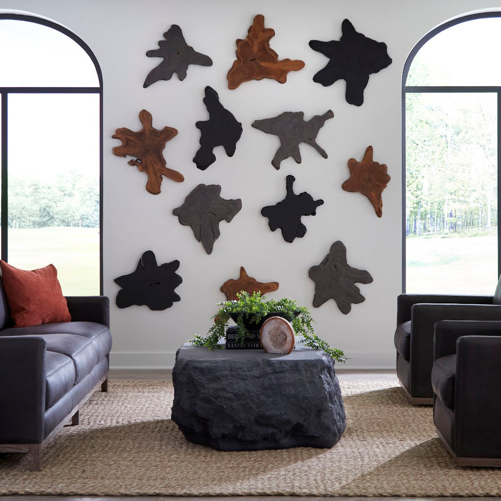 The Quarry Coffee Table offers the perfect blend of organic shape and modern materials. The finish is created with a resin and crushed stone composite which lends an authenticity of a natural boulder without the weight. Its rocky shape and uneven edges add a touch of rustic charm, while the composite ensures its durability and lightweight. Whether used as a statement piece or simply for functionality, the Quarry Coffee Table is sure to make a bold impact in any home.