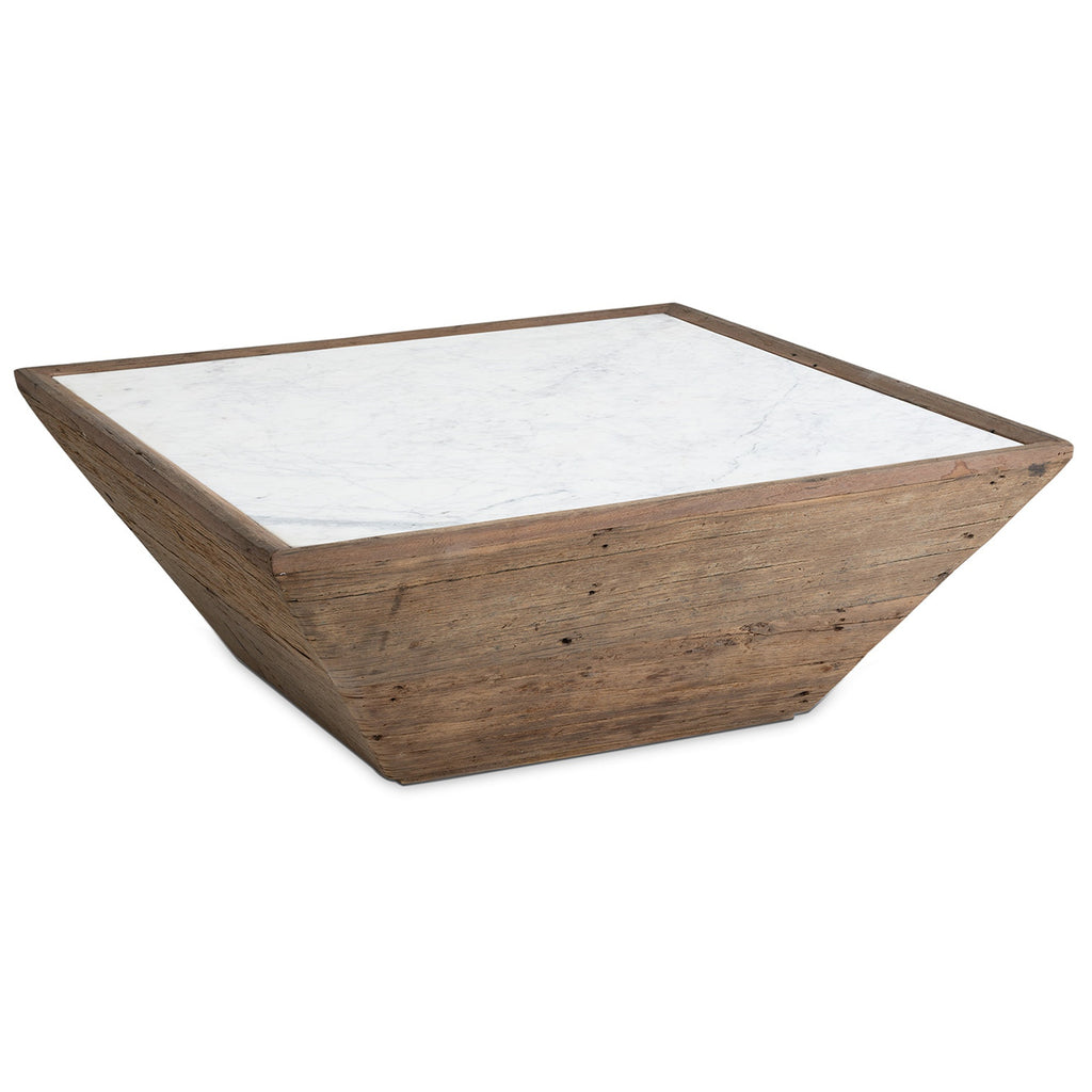 The Vale Wood Coffee Table proves that reclaimed wood looks good from all angles. The wood base opens up to a recessed marble top, adding depth and dimension to any space.