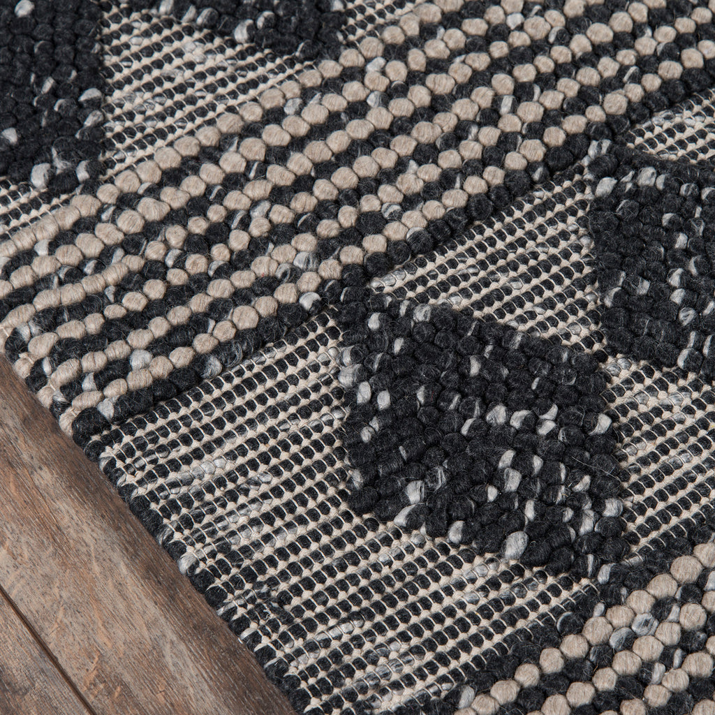 Add a touch of the American Southwest with the earthy styling of this modern area rug collection. This assortment of decorative floor coverings features a softly toned grey, beige and blue color palette and high-low pile that accentuates graphic geometric patterns like diamonds and stripes. With balanced, rustic designs, this elegant series of hand-tufted wool rugs brings long-lasting elegance to high-traffic areas and restful spaces alike.