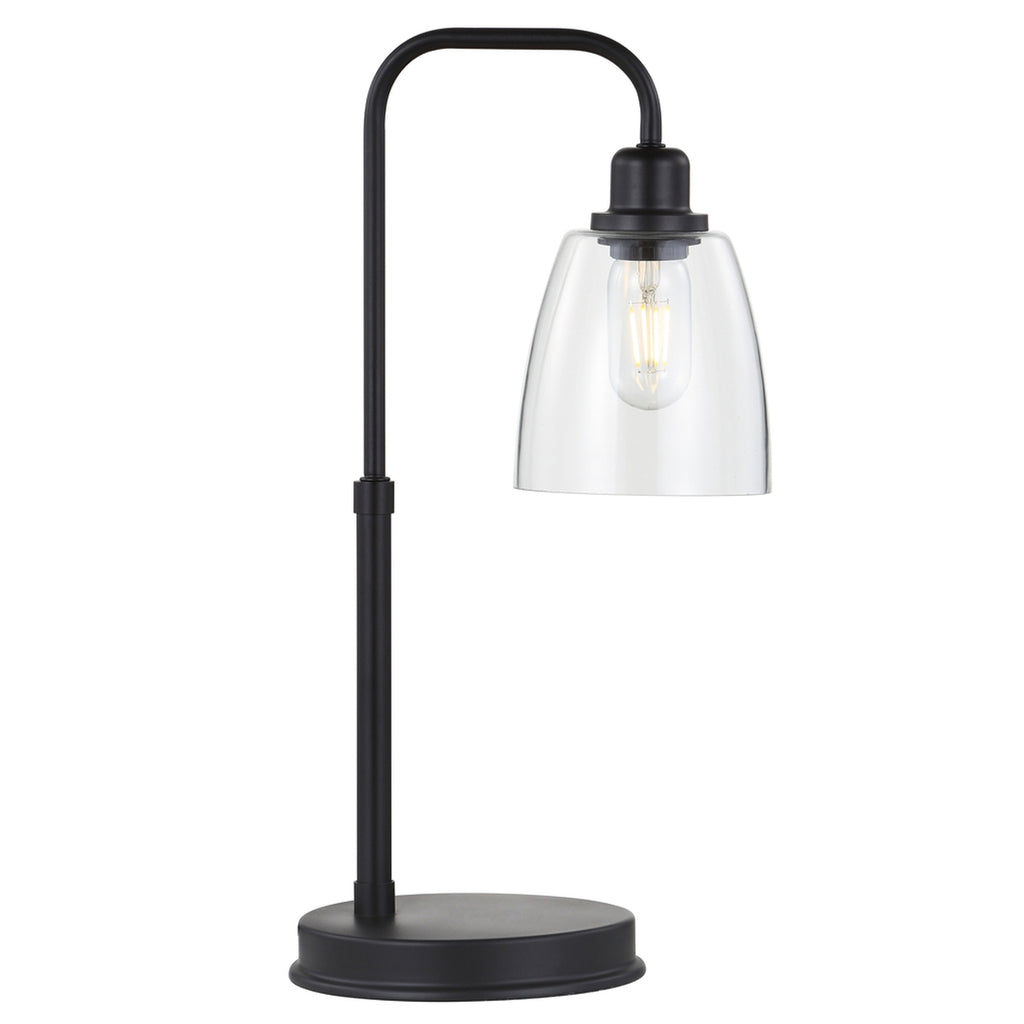 An updated take on a Victorian streetlamp, the Cataya Table Lamp brings vintage flair to the workspace. A clear shade casts ample light while showcasing a retro bulb, with a black iron body creating the ideal form for its suggestive look.