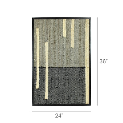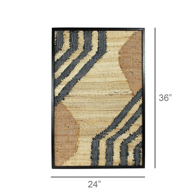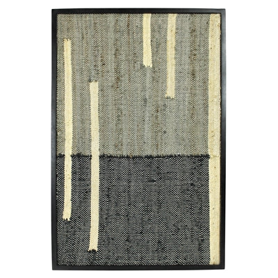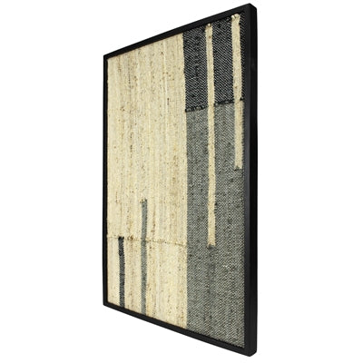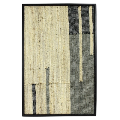 Cotton and hemp are kilim loomed into graphic patterns and framed in solid mango wood with a bold black stain. Each statement-worthy piece is hand loomed so beautiful variations are to be embraced.