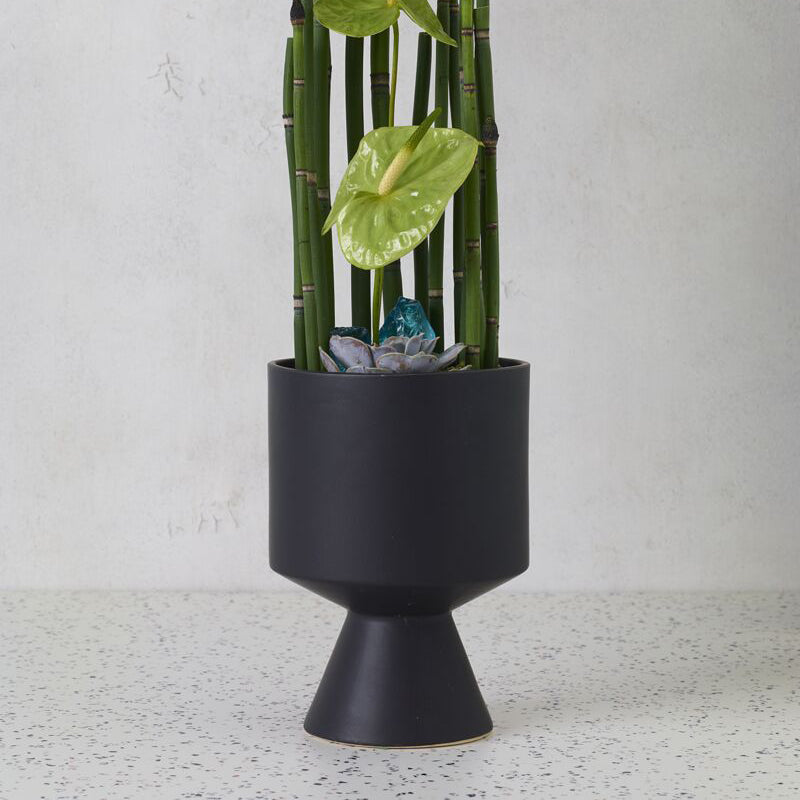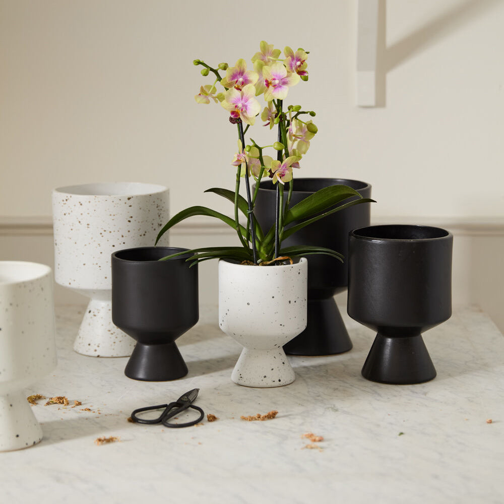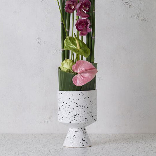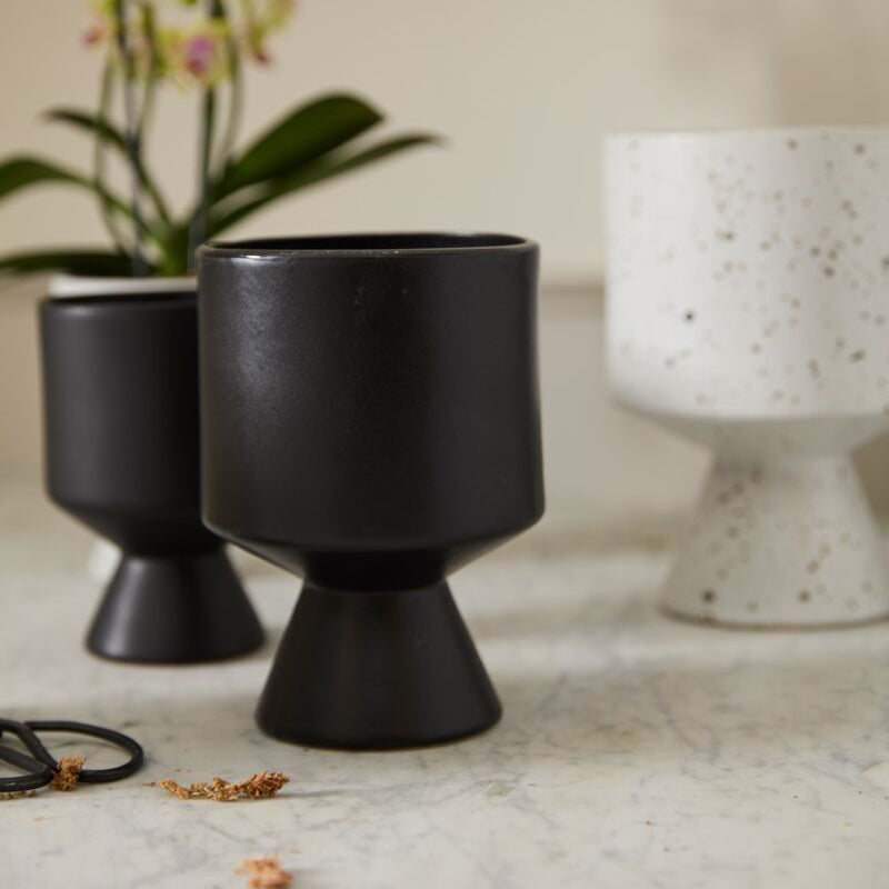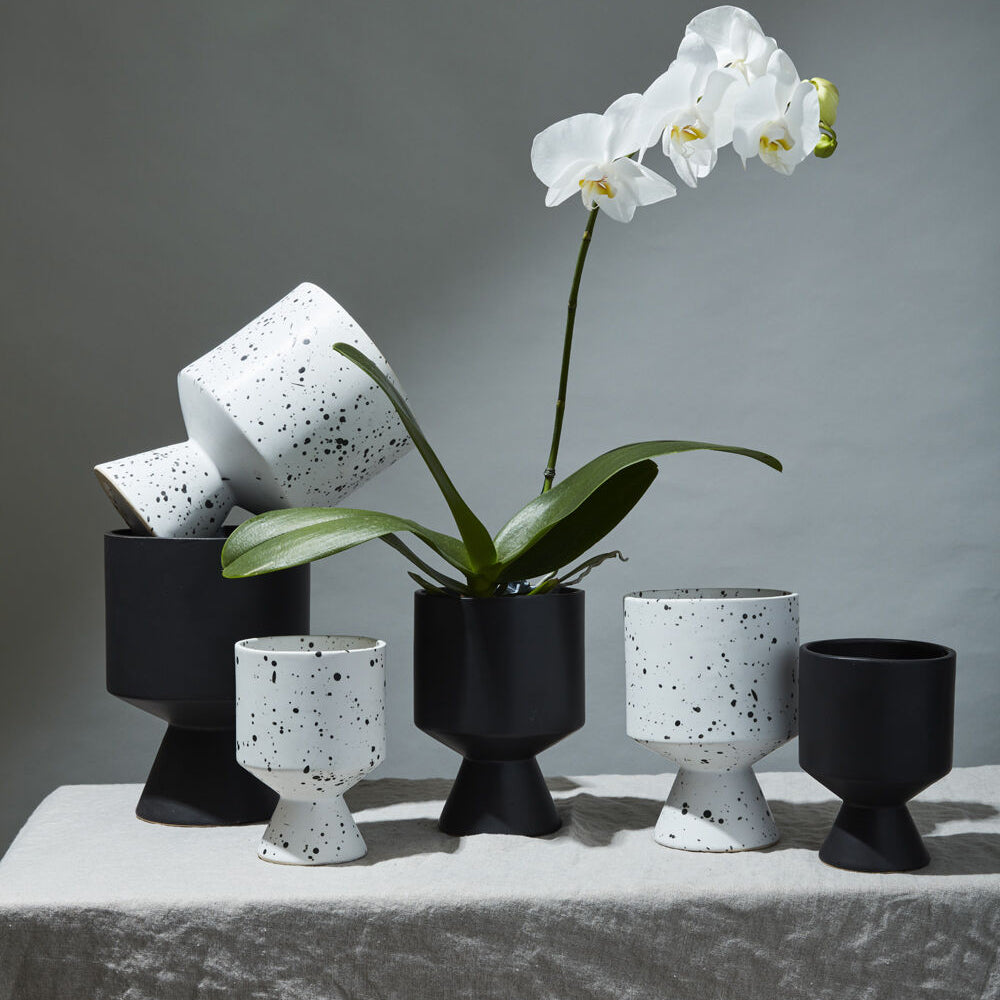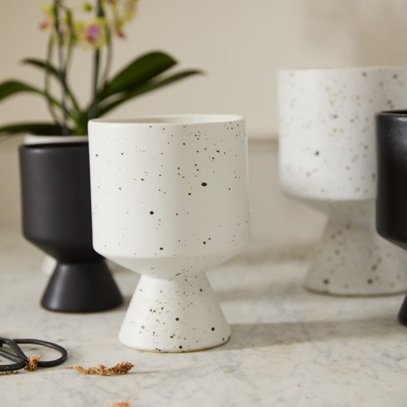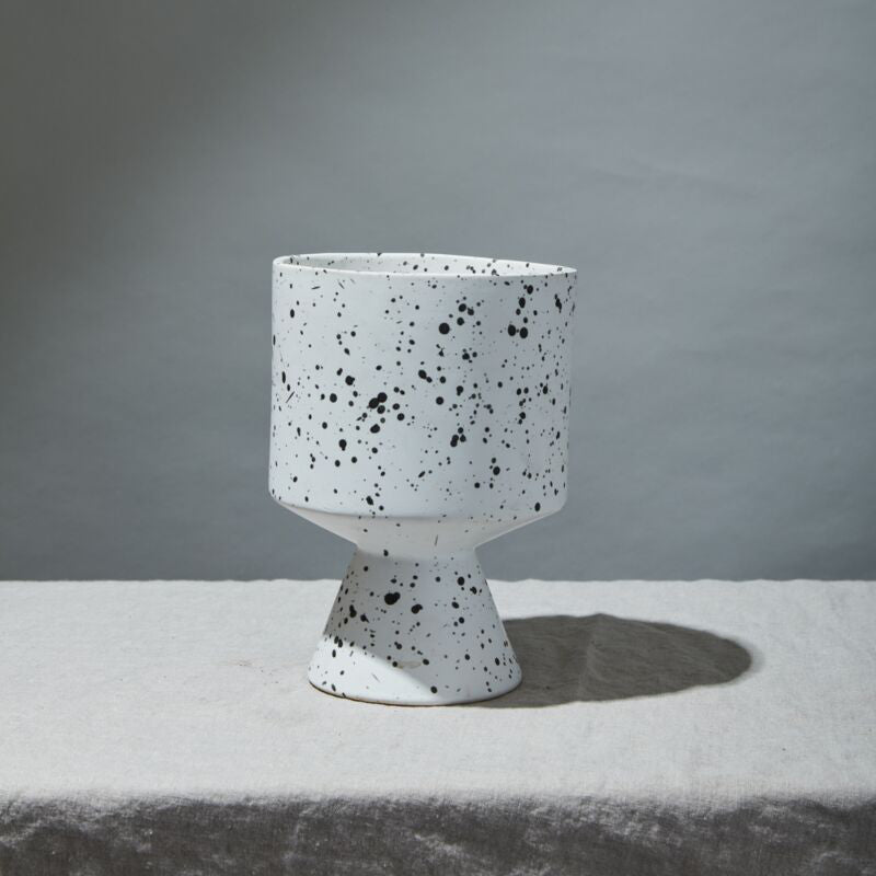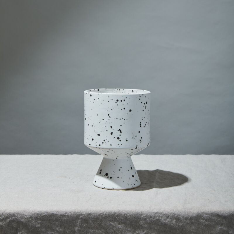 The DeVil collection is unique from silhouette to finish. The vase is first glazed, before speckles are applied by flicking glaze onto the pot by hand