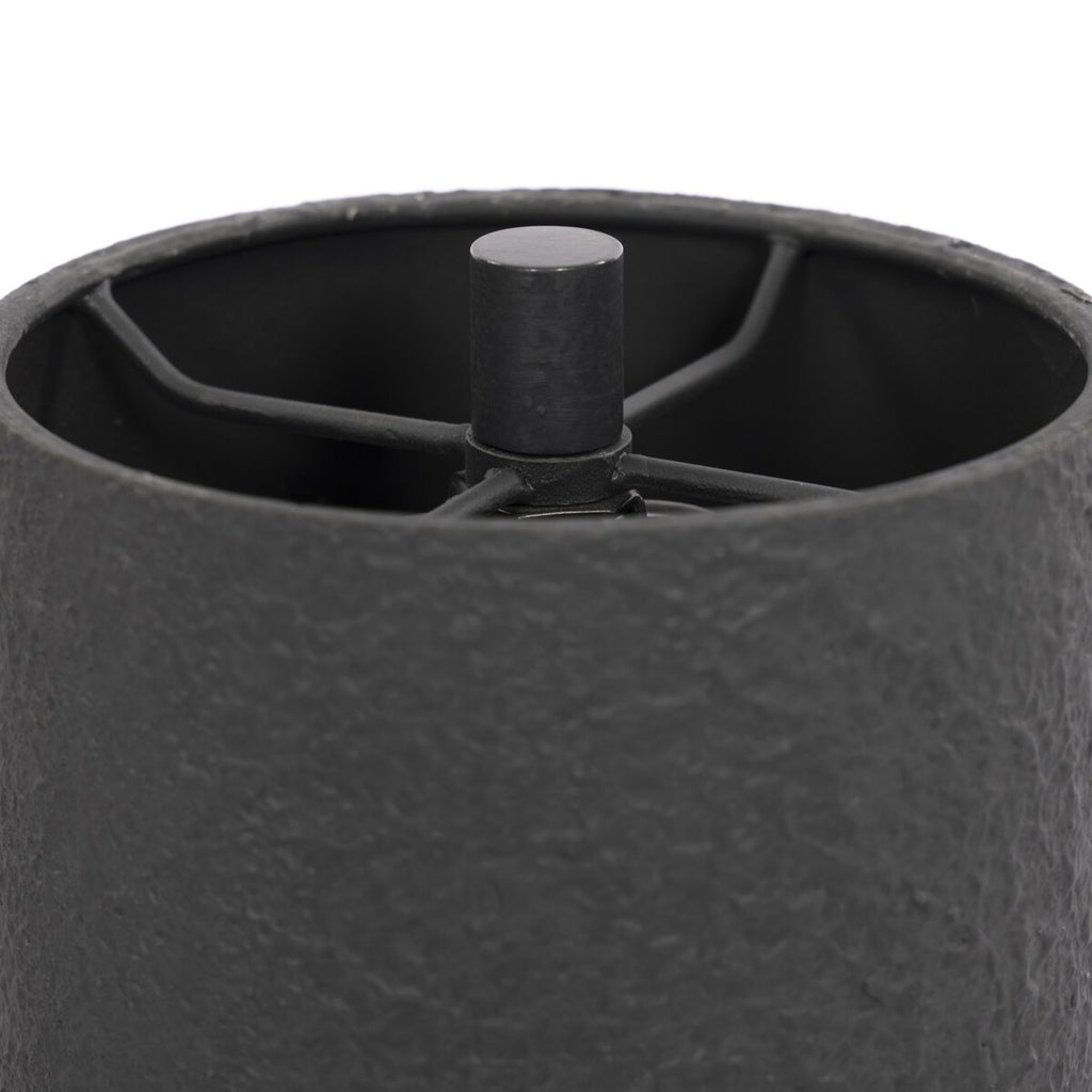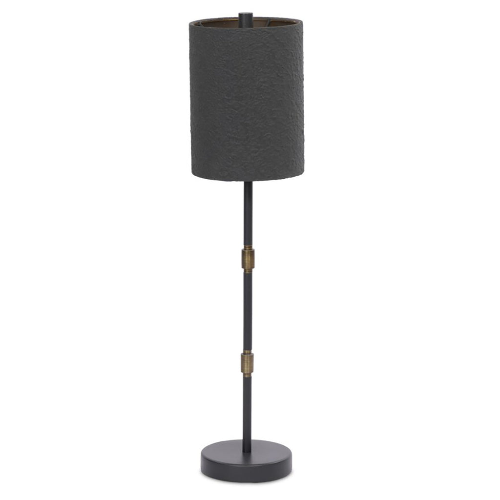 A slim, black iron pole pairs with a black plaster shade, bringing a monochromatic, minimalist look to your desk, bedside or accent table.