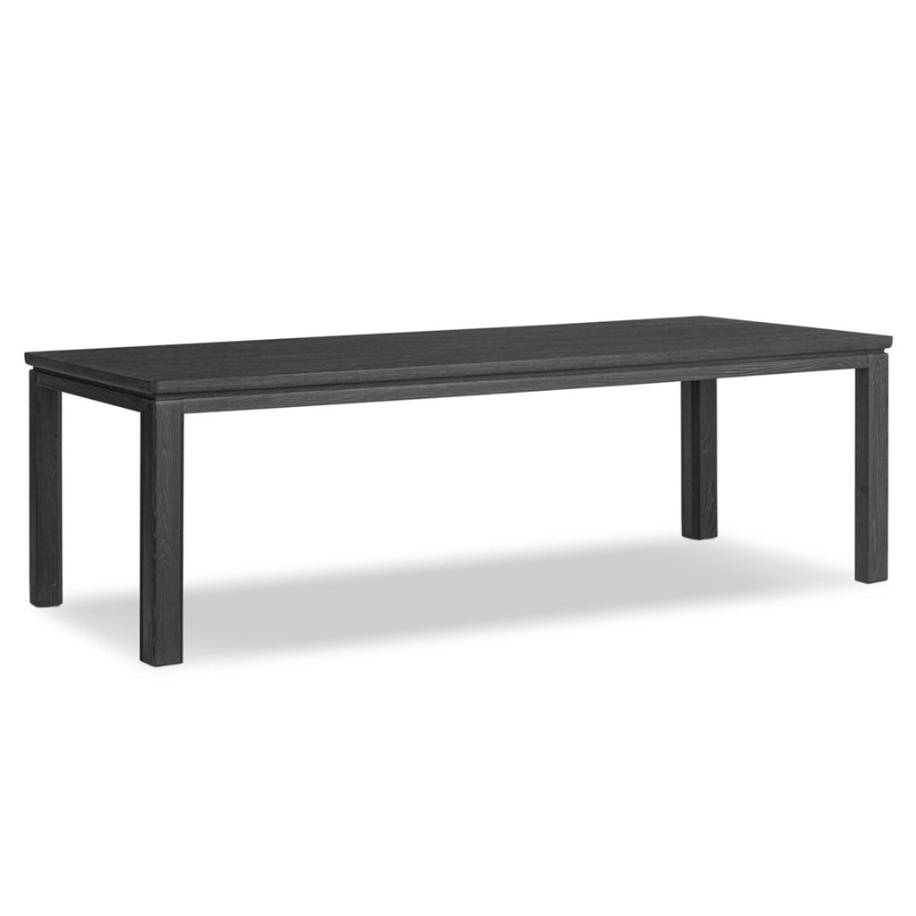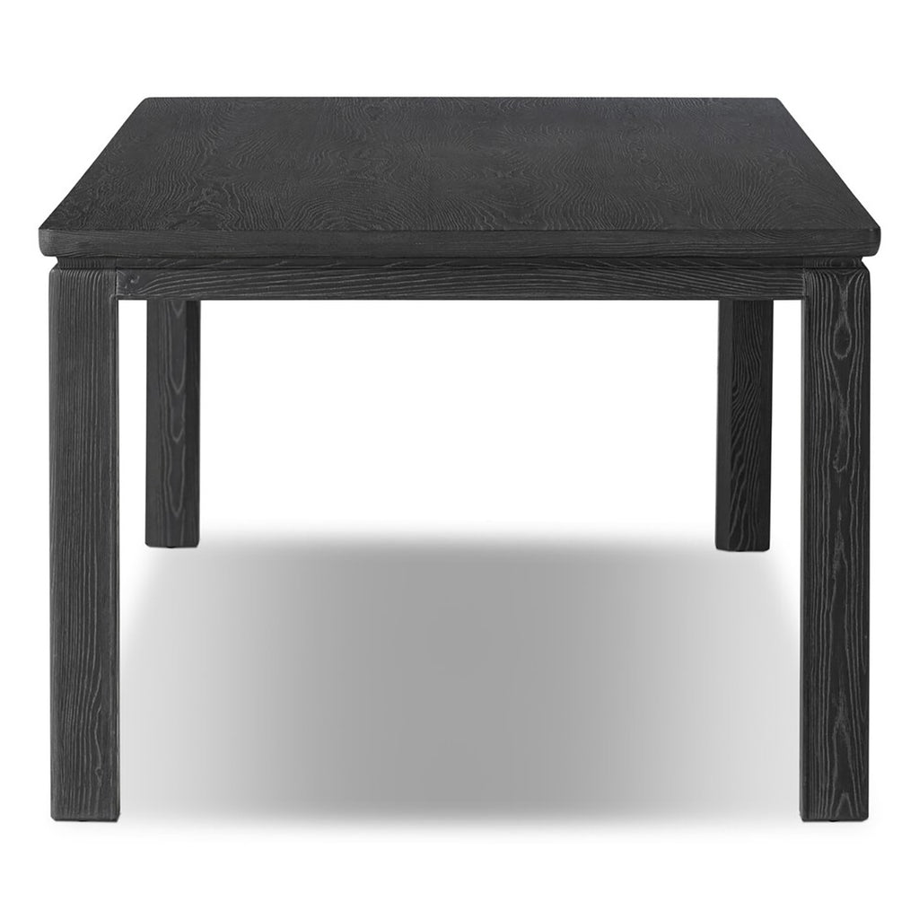 The timeless Parsons table is reimagined, with a rustic black finish and unique relief detail between the tabletop and apron.