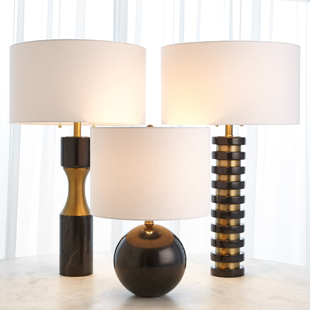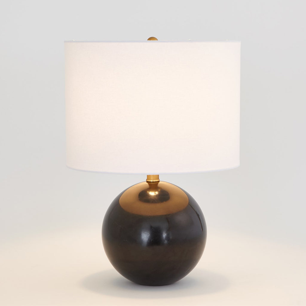 The Global Views Marble Sphere Lamp is made of solid marble with brass fittings. Made of naturally quarried marble, color and veining variations may occur.