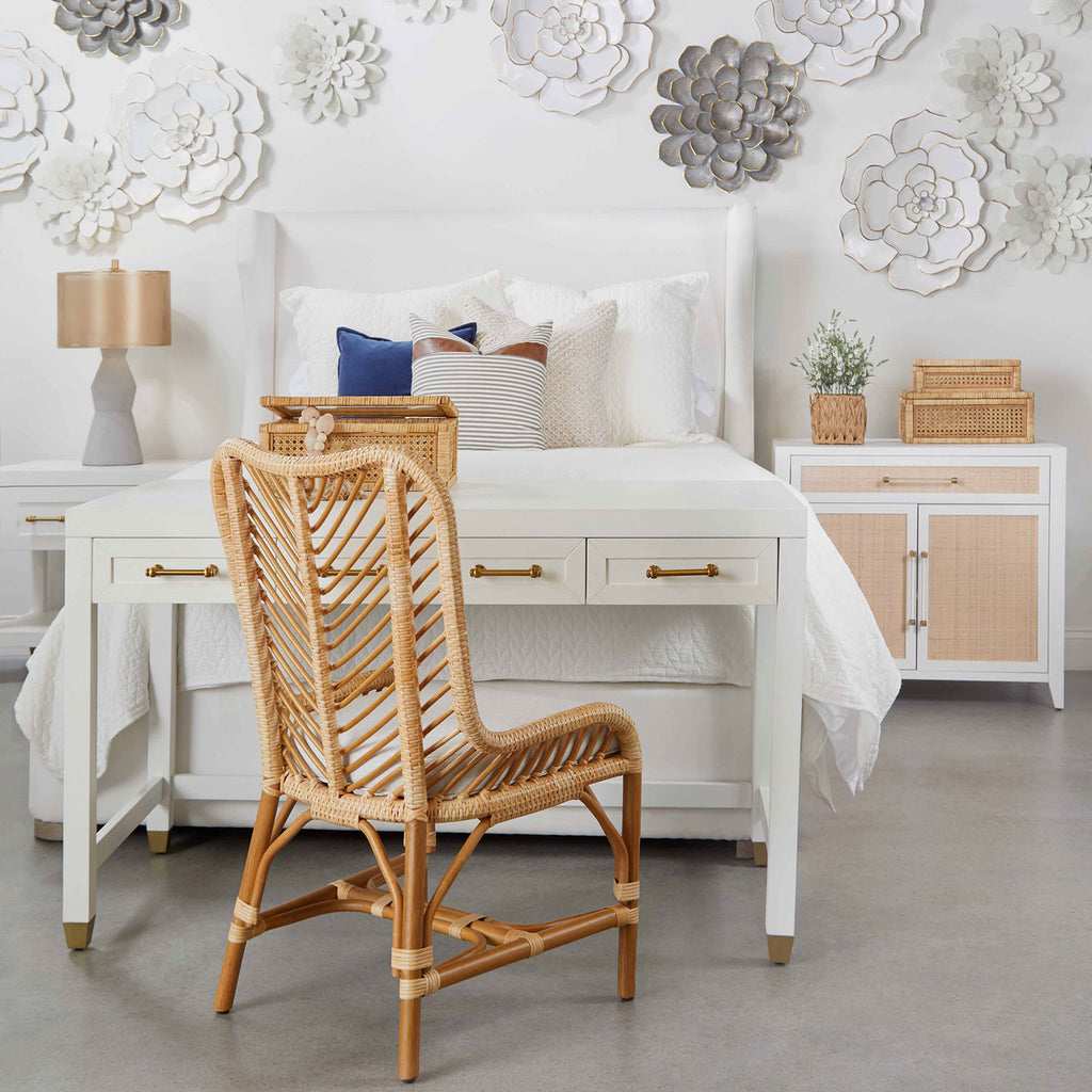 • Finish: Brushed Black Acacia / Natural Rattan or Matte White / Natural Rattan