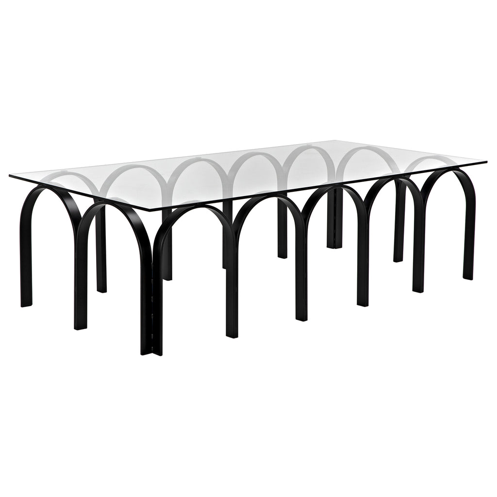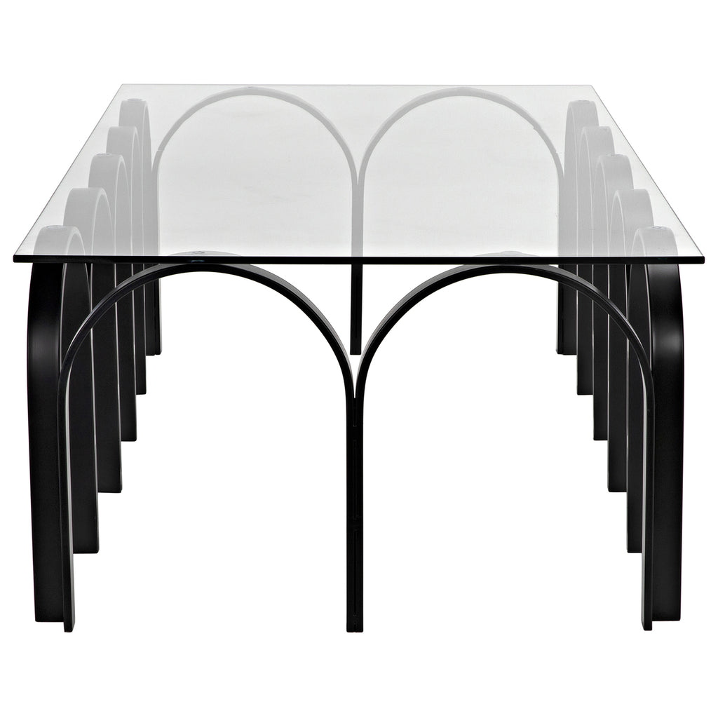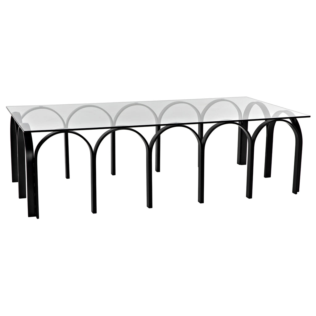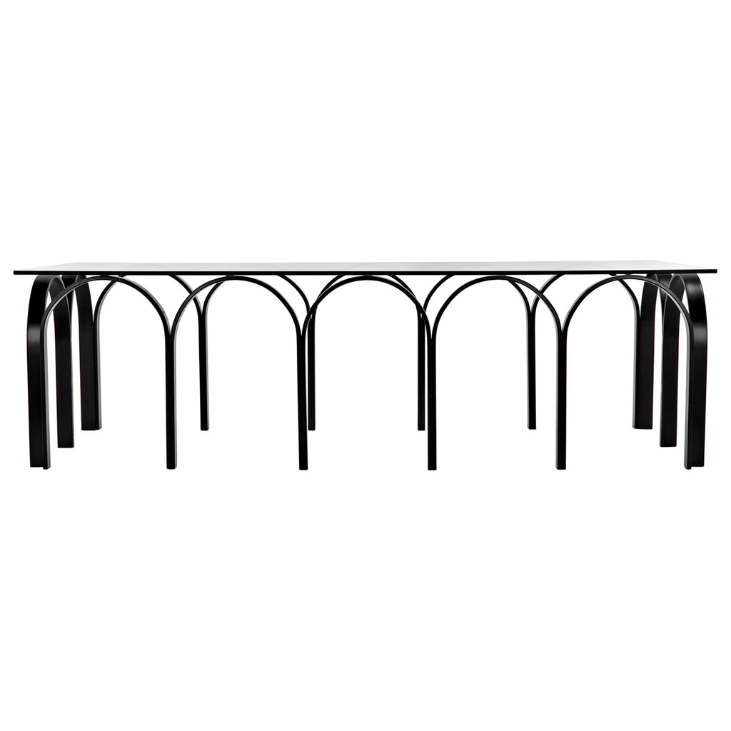 Made from industrial steel and glass, the Arcus Coffee Table features graduated steel cylinders, and a sleek glass top. The mixed material design brings trend-setting style and makes a striking centerpiece for any living room.