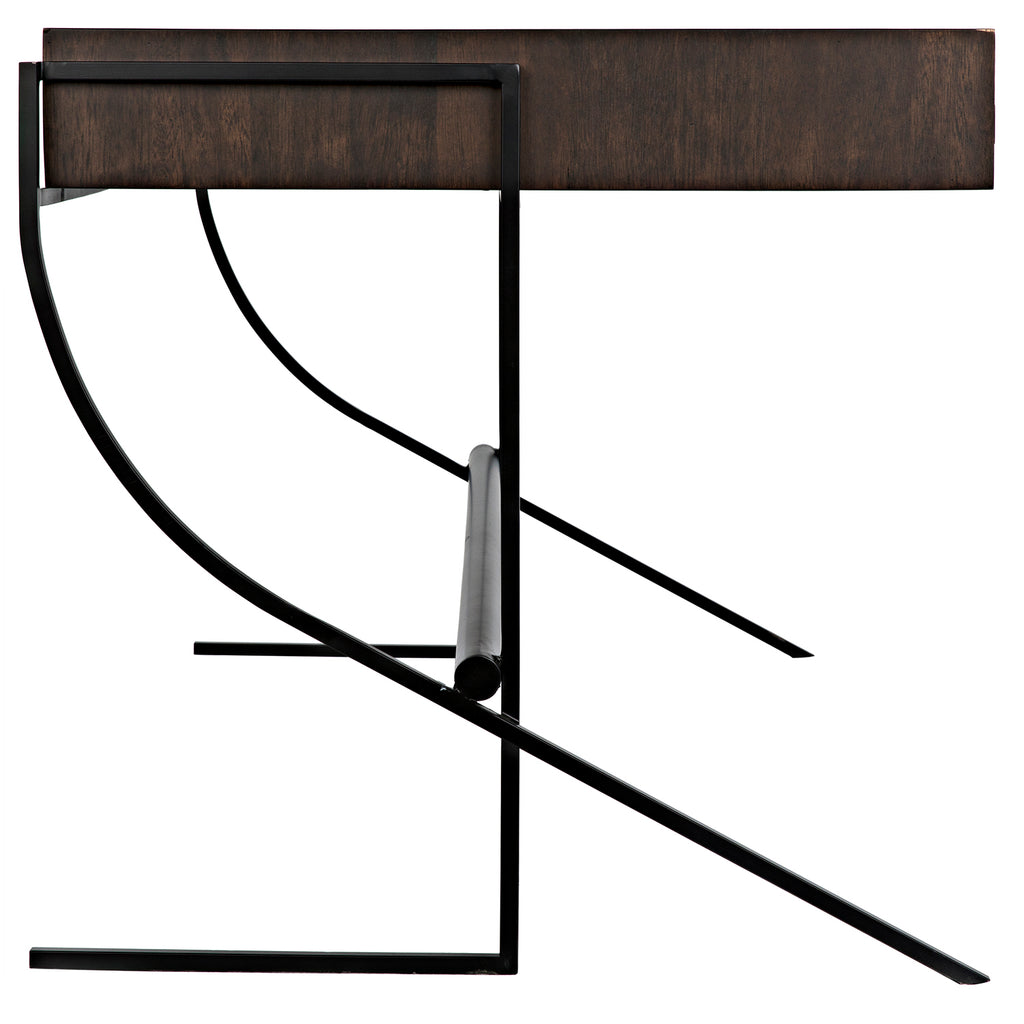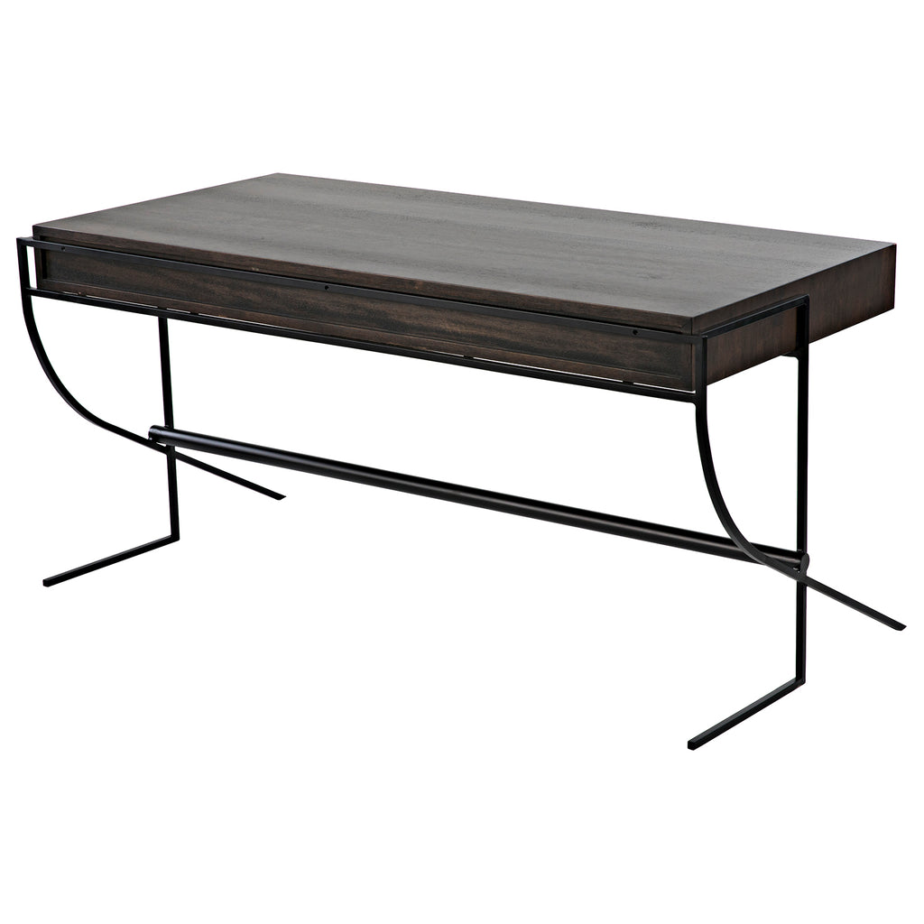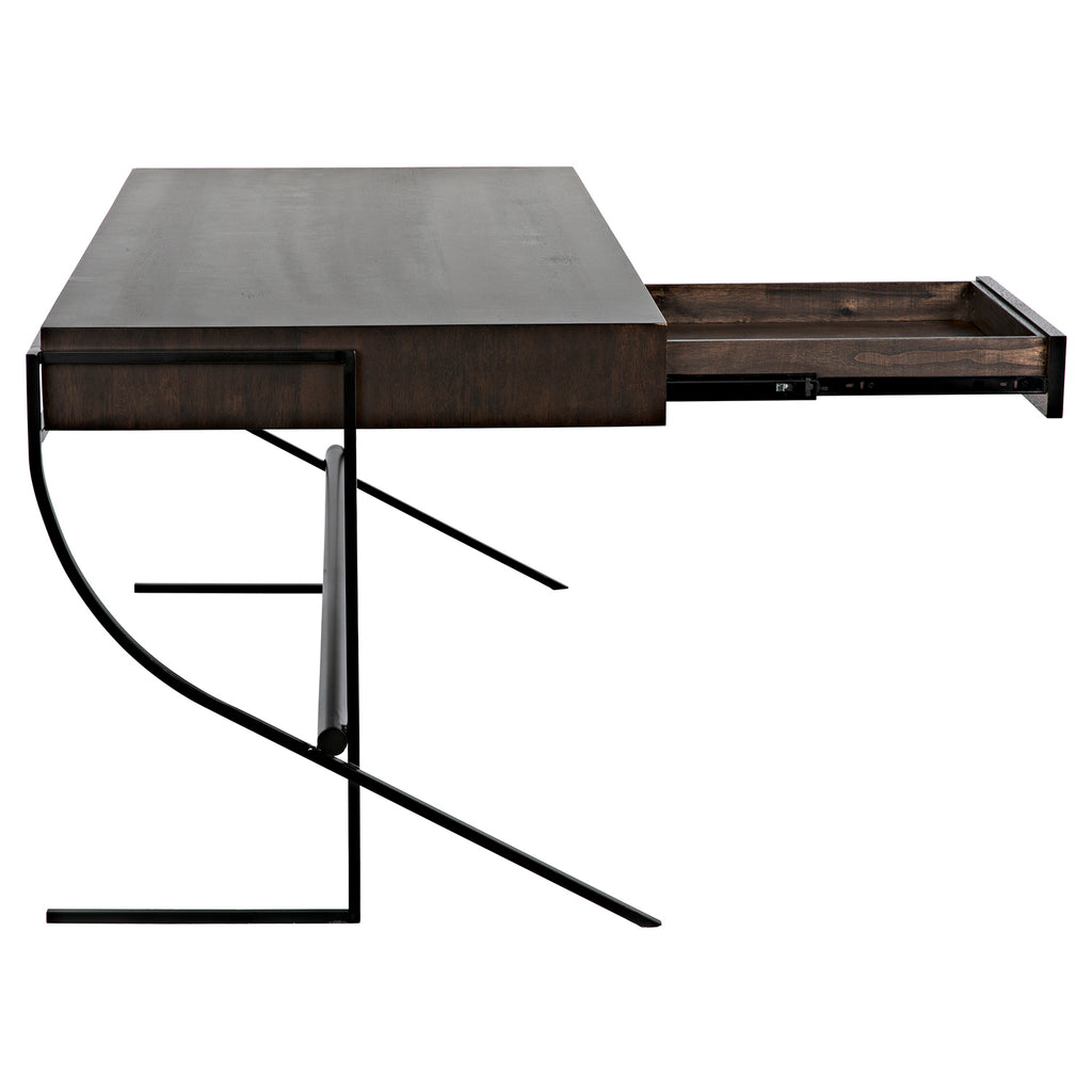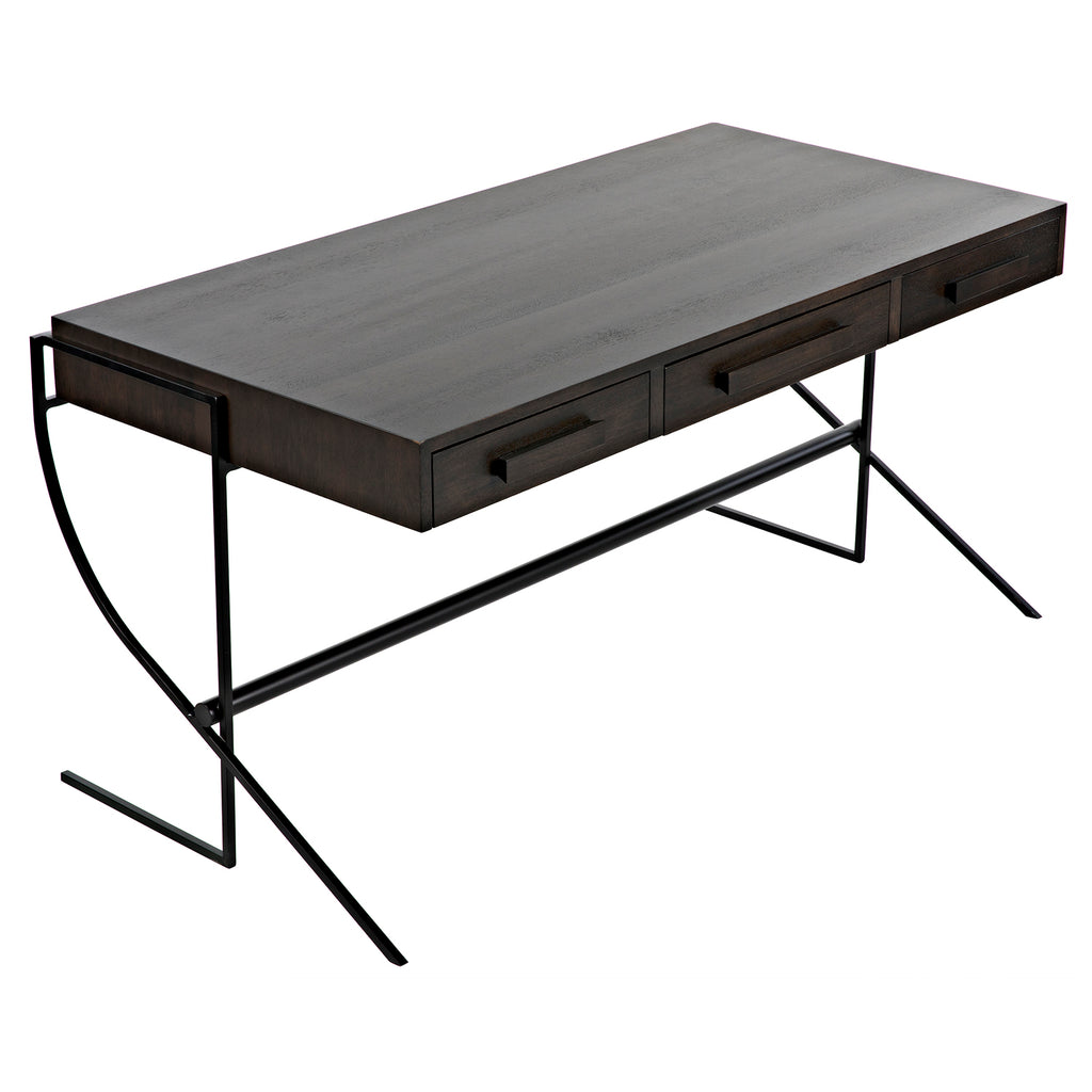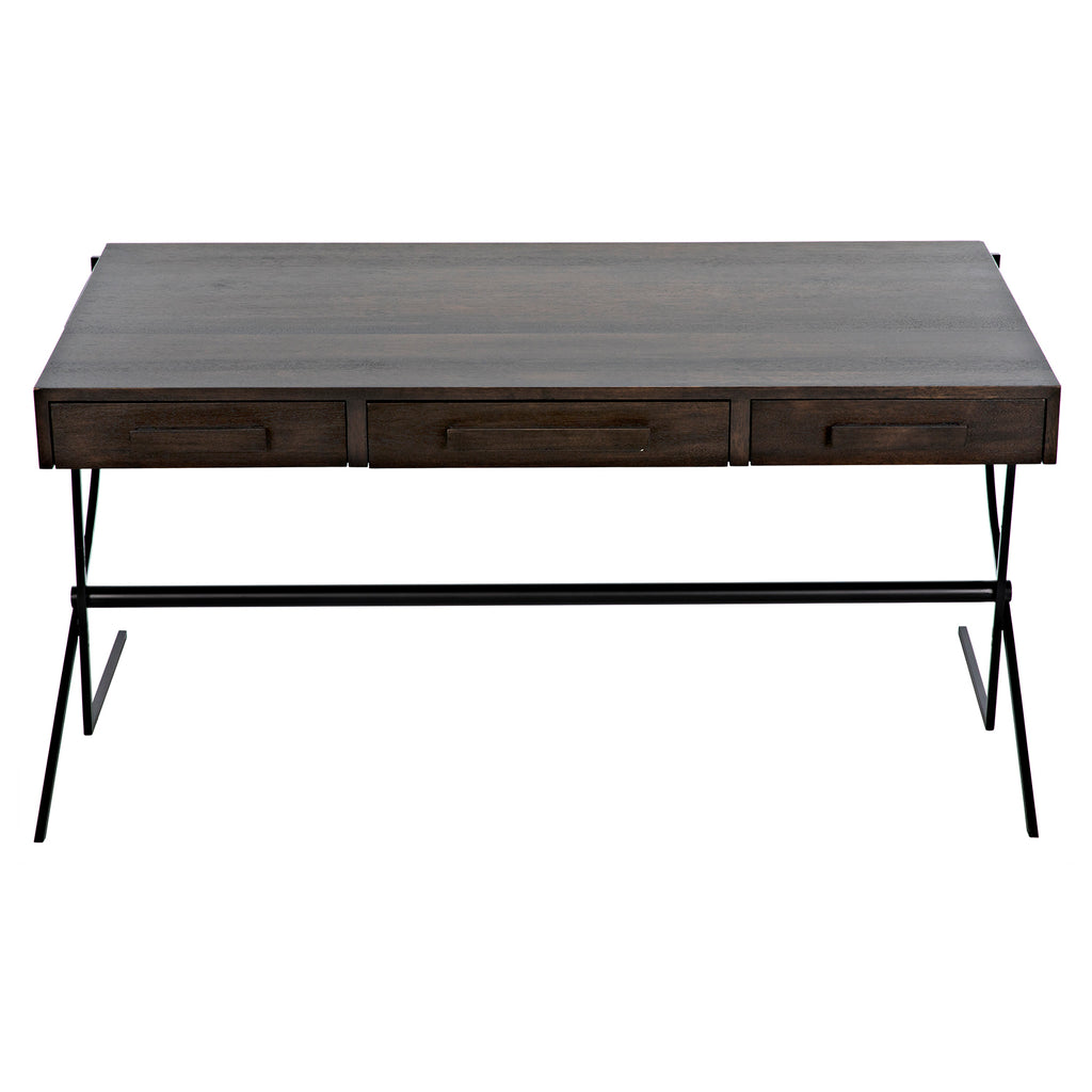 This classic writing desk is distinguished by its masterful craftsmanship. Its classic lines are enhanced with a dark walnut finish, and its four drawers open easily with metal pulls.
