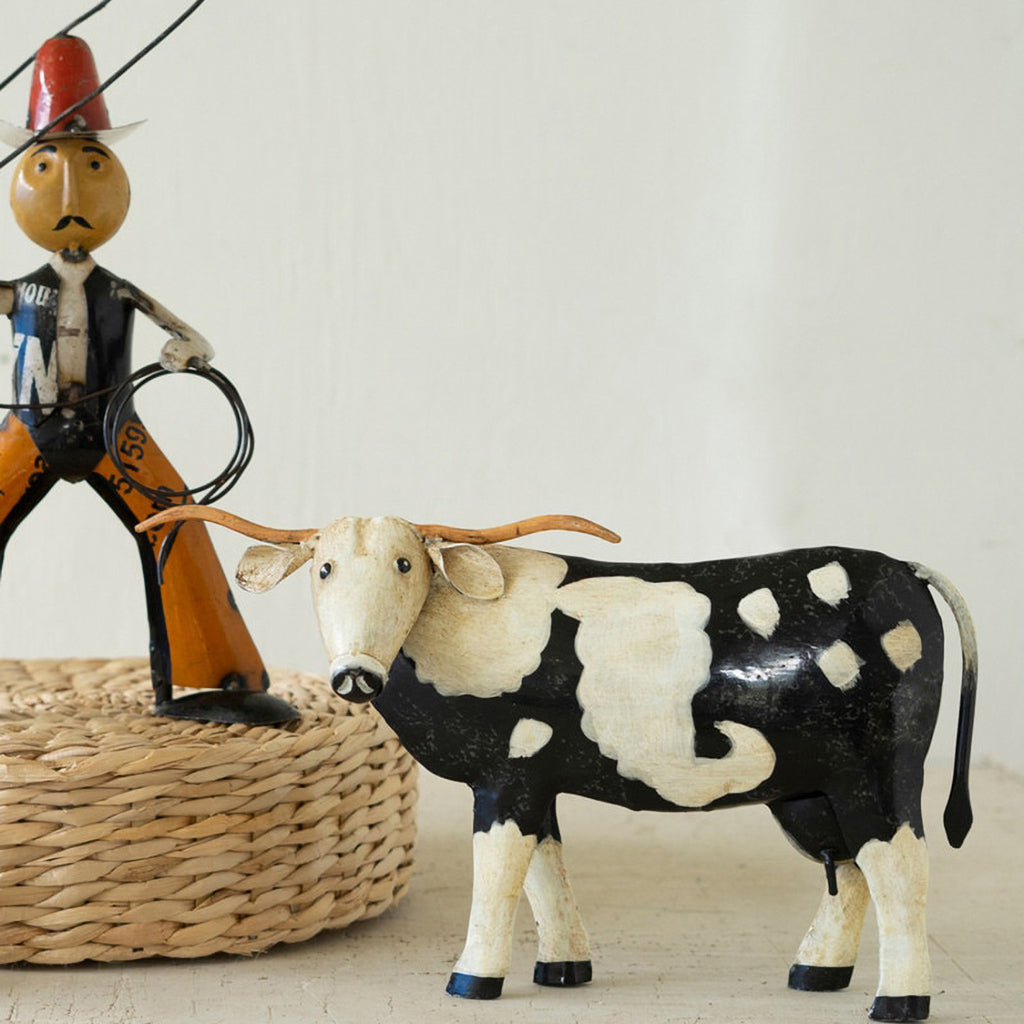 Tell your Texas friends you're thinking of them or start a roundup at the Ranch. This painted white and black steer makes a fun gift. Grab a set to decorate anywhere.