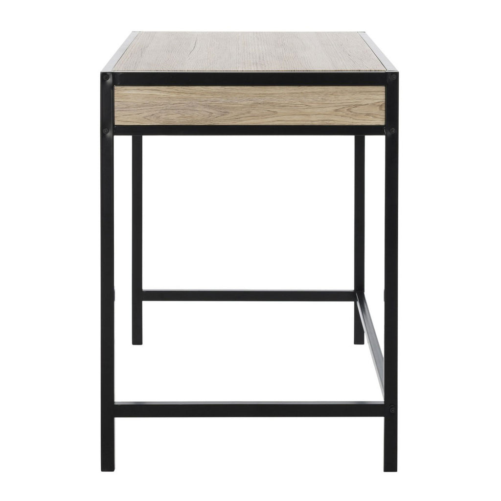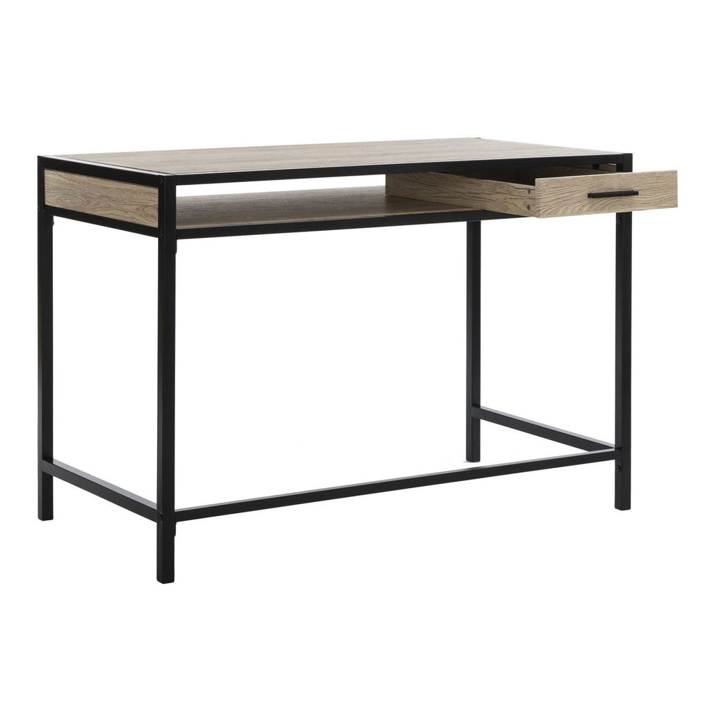 Inspired by the workplace of a top NYC architect, this 1-shelf desk is ideal for the contemporary office. An open shelf keeps tech discreet while a tray hides unsightly supplies. Its rich oak finish and black metal frame make it a classic.