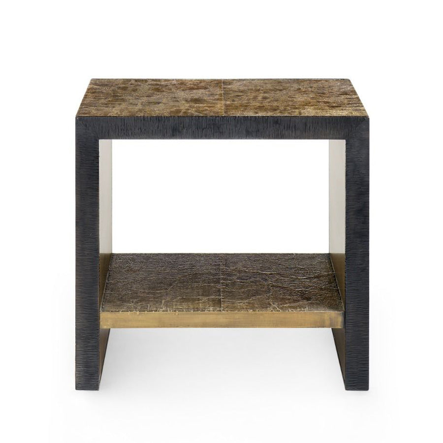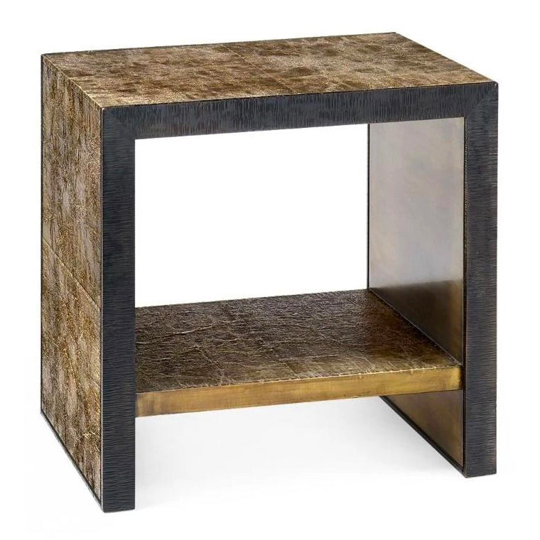 The V&H Odeon side table is both organic and contemporary in its appeal. The simple geometric profiles serve to showcase the creative treatment of the antique-brass finish which resembles naturally aging metal.