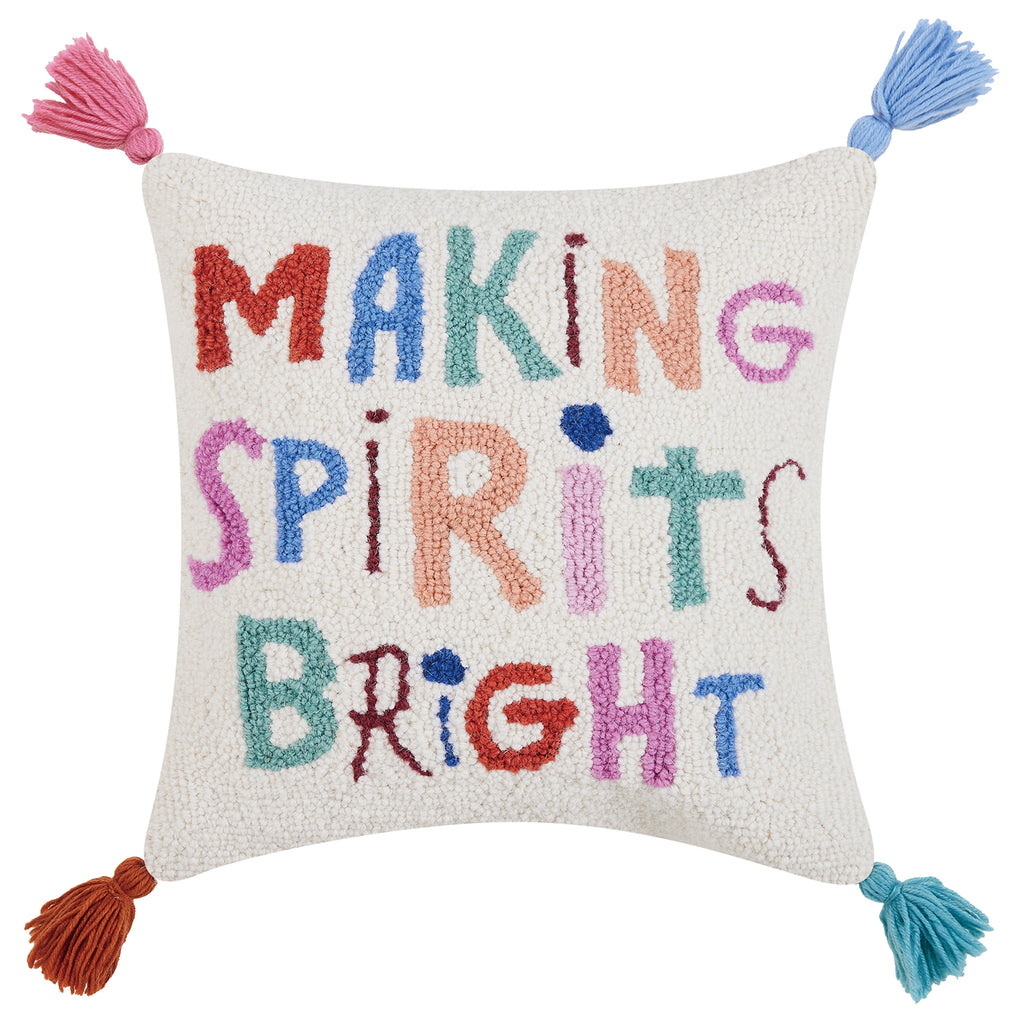 Ampersand Making Spirits Bright with Tassels Hook Throw Pillow