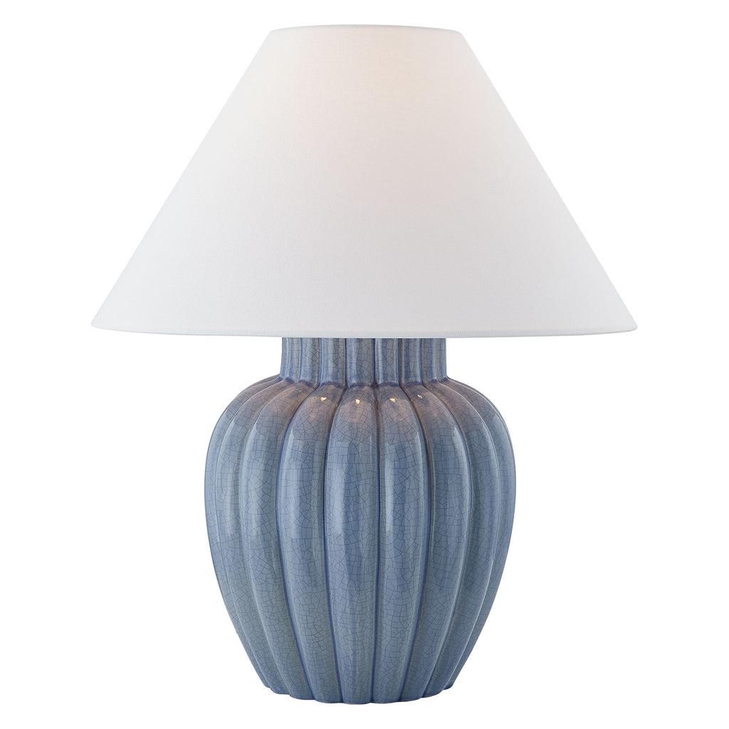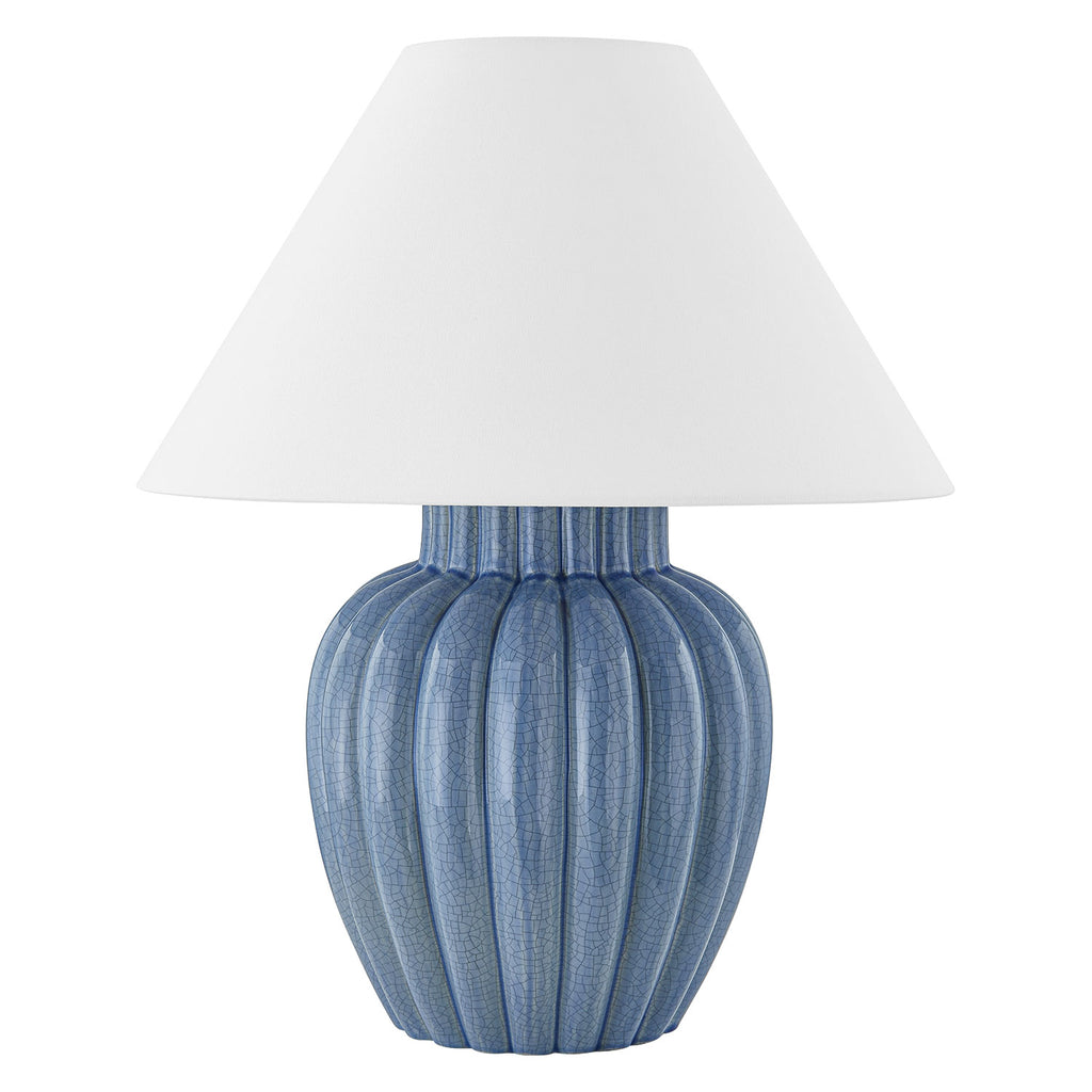 High-quality and exceedingly creative, Mitzi delivers a semi-nostalgic classic lighting collection with streamlined contemporary elements that instantly upgrade your space. Let texture and illumination enhance your living space with a table lamp by Mitzi, serving daily inspiration with flawless form and function. Crackled ceramic and fluting make this classic silhouette feel very of-the-moment. The blue hue pools in the cracks and ribbing, creating dimension and a gorgeous textured effect. Place this lamp on any tabletop, counter or nightstand to add instant style and a unique pop of color. Part of the Ariel Okin x Mitzi Tastemakers collection.