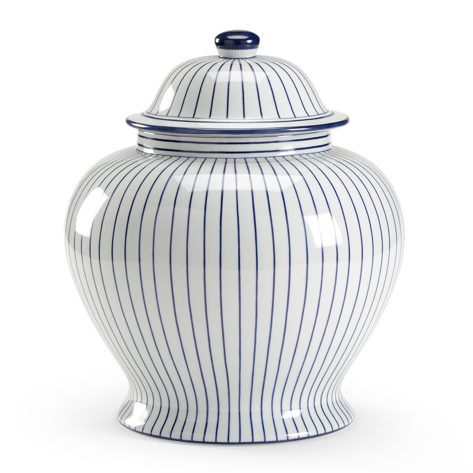 Chelsea House decorates the home with the gorgeous Castle Urn. A sophisticated conversational piece, this lidded urn sits atop a coffee table or mantle to catch the eye. Hand Decorated In Blue Porcelain, available in 2 sizes.