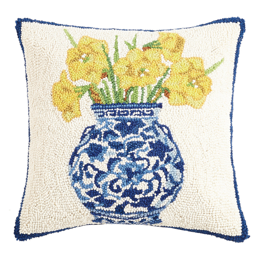 Chinoserie Vase with Daffodils Hook Throw Pillow