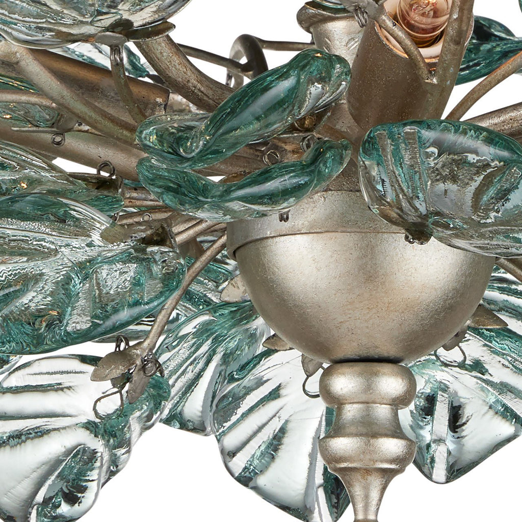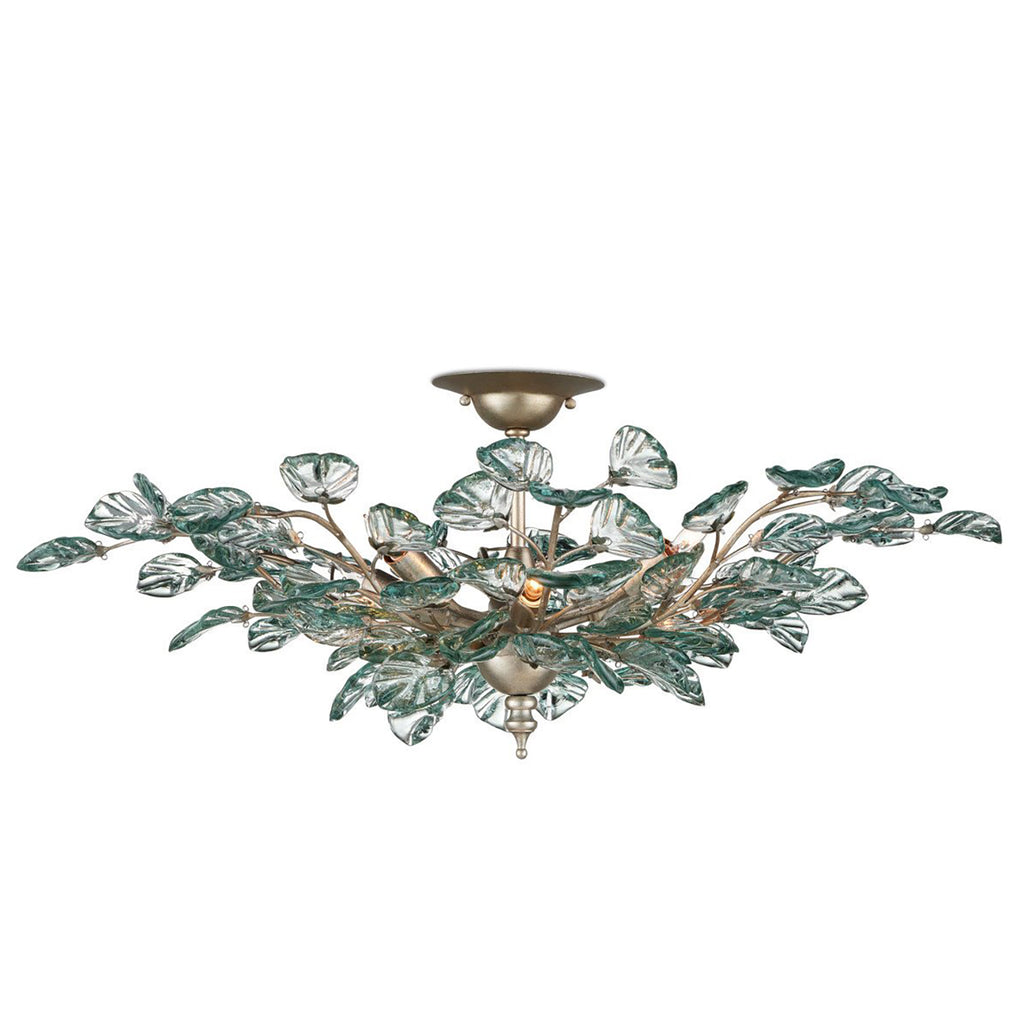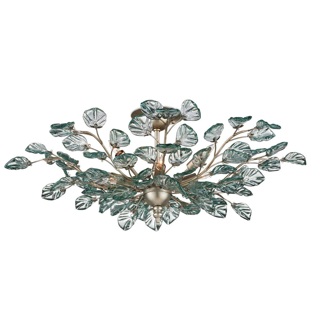 The Currey & Co Baobab Semi-Flush Mount has luminous leaves that are made of recycled glass and pressed into shape. The biophilic design is made even more graceful by the placement of the glass pieces that seem to be fluttering in a breeze. These are attached to wrought iron stems in a contemporary silver leaf finish that gleams beautifully.