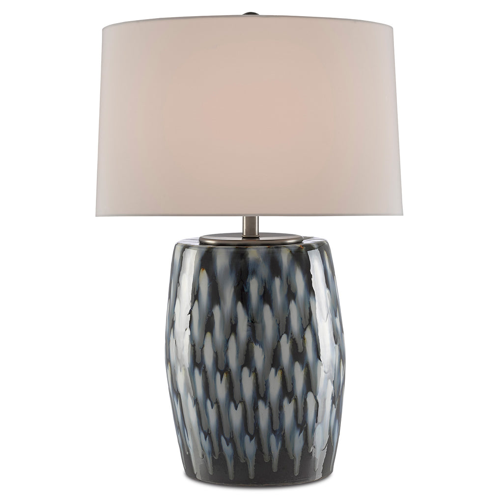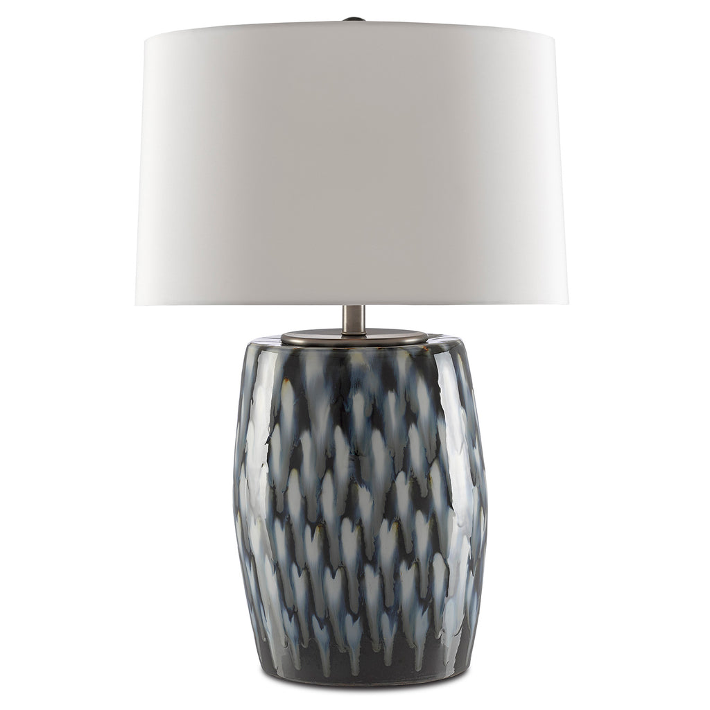 Plumes of indigo and cloud-colored blues rise up the body of the Currey & Co Milner Blue Table Lamp made of porcelain. This is one of the Currey & Company offerings that proves the talent of their finish artisans who love to experiment with handmade treatments on a variety of materials. Providing this lamp just the right touch of cohesion is the gray birch silk drum shade that echoes the light tones in the lamp’s body.