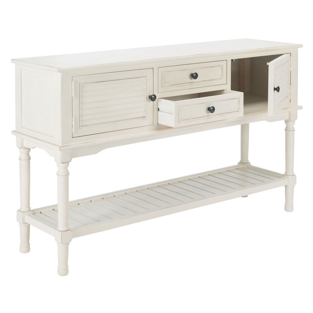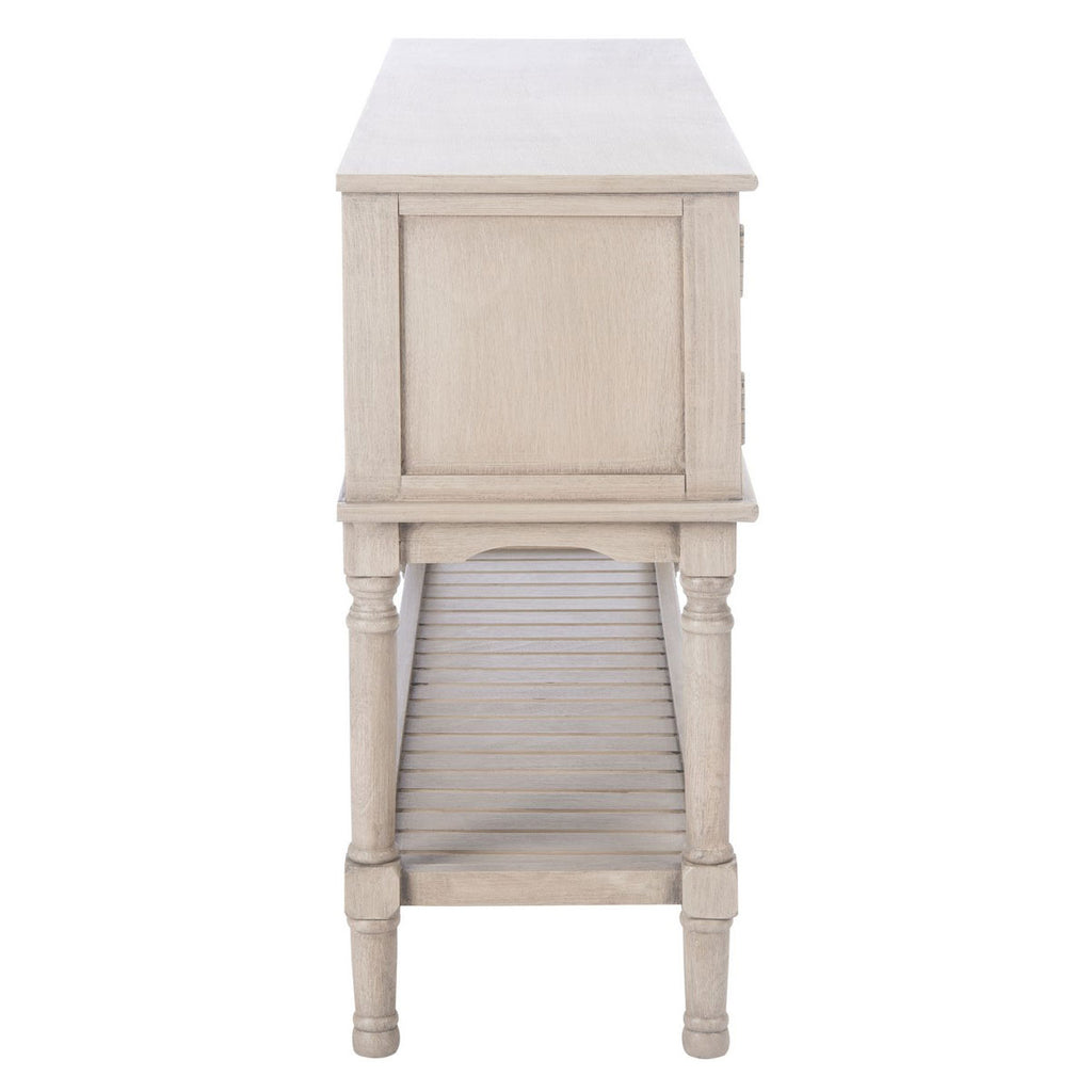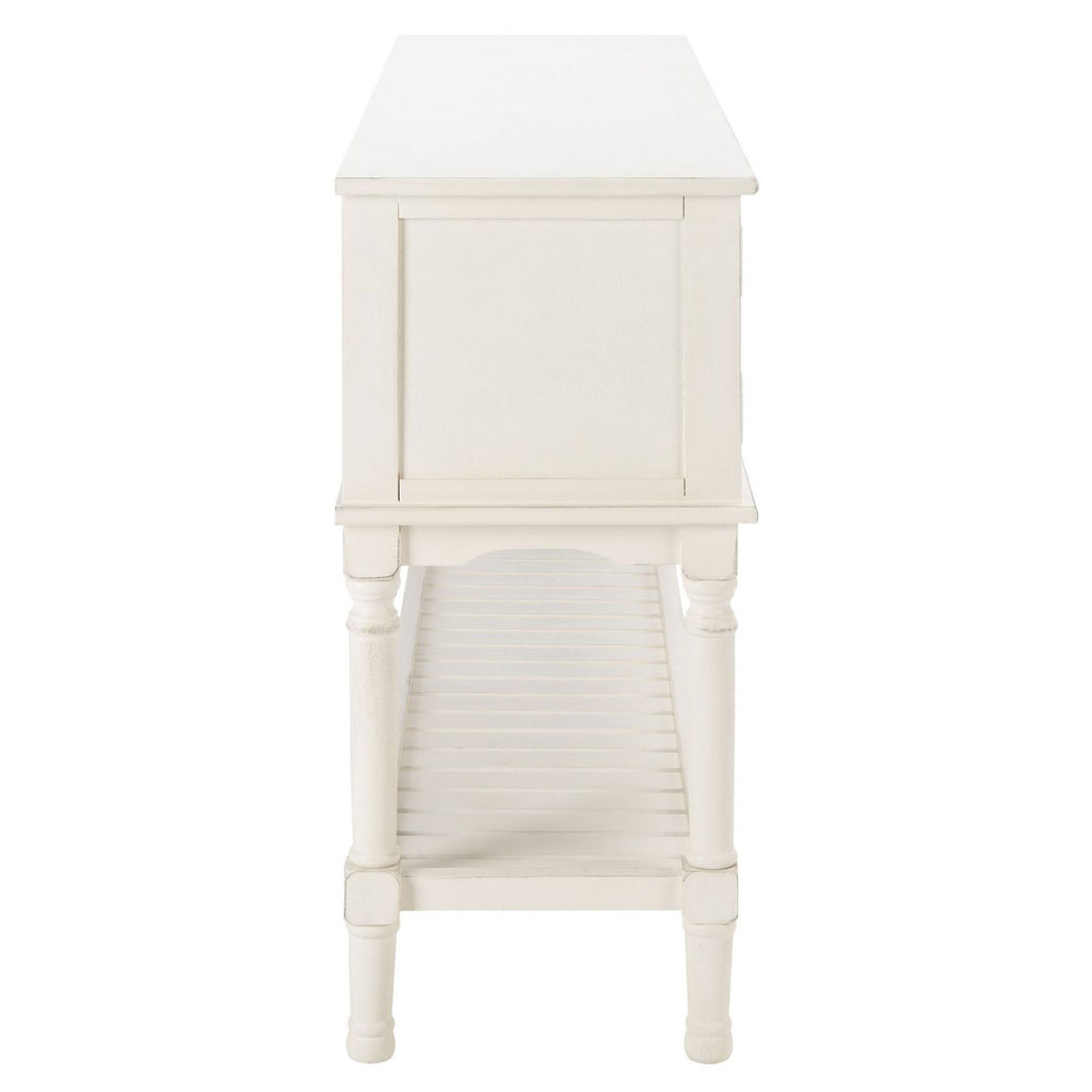A touch of timeless tradition comes to classic contemporary décor in this Tate 2 Drawer 2 Door Console Table. Tate’s finely sculpted turned legs and carved details are treated to a modern farmhouse upgrade with its distressed white finish and slatted