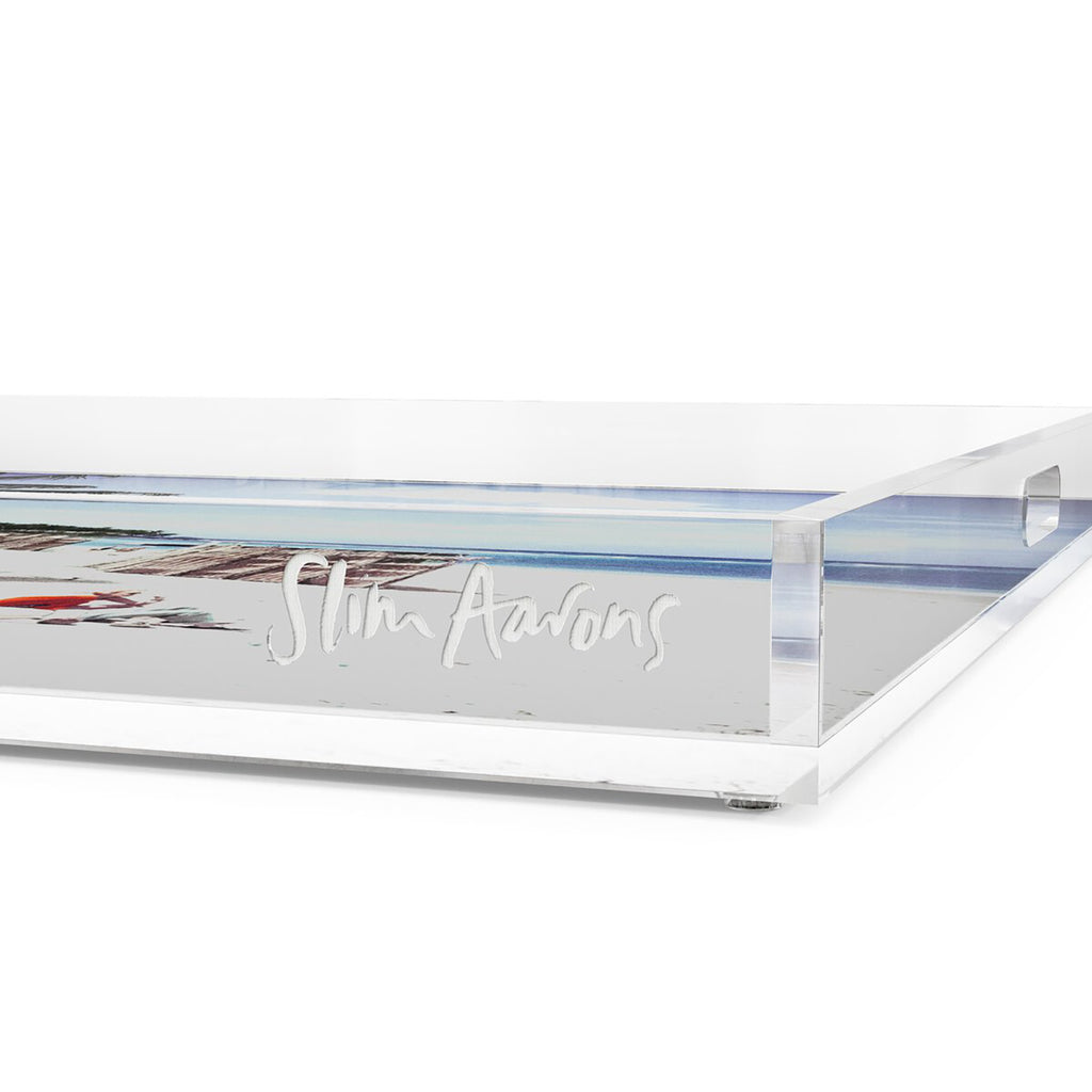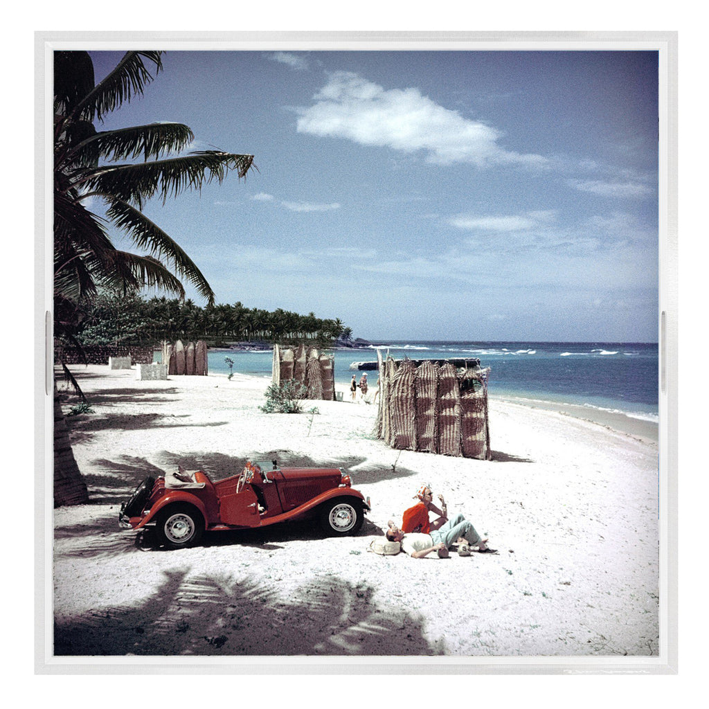 A specially selected work from the late influential photographer Slim Aarons, printed directly on an acrylic tray that's crafted in-house by Four Hands Art Studio. Handmade in Austin, Texas, each piece includes a certificate of authenticity commemorating the partnership between Slim Aarons, Getty Images Gallery and Four Hands Art Studio. Photo courtesy of Getty Images.