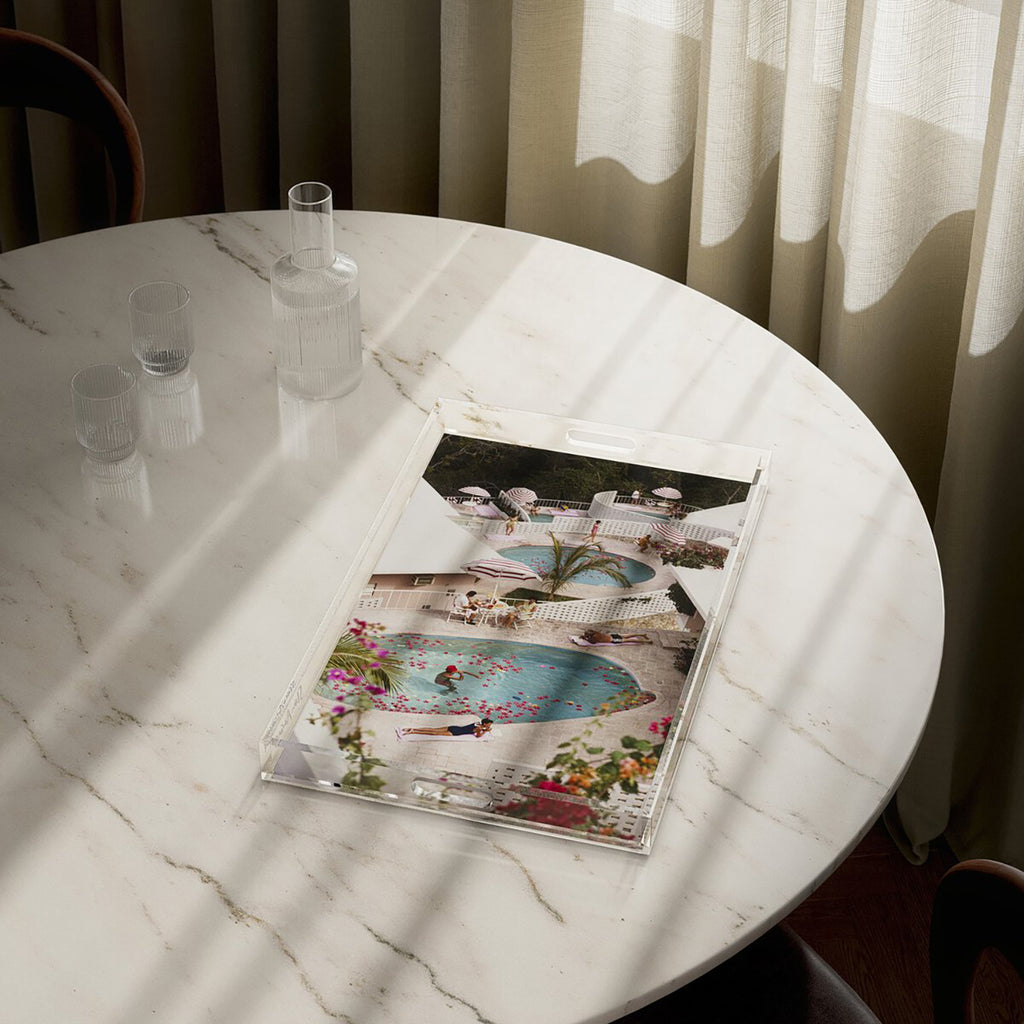 A specially selected work from the late influential photographer Slim Aarons, printed directly on an acrylic tray that's crafted in-house by Four Hands Art Studio. Handmade in Austin, Texas, each piece includes a certificate of authenticity commemorating the partnership between Slim Aarons, Getty Images Gallery and Four Hands Art Studio. Photo courtesy of Getty Images.