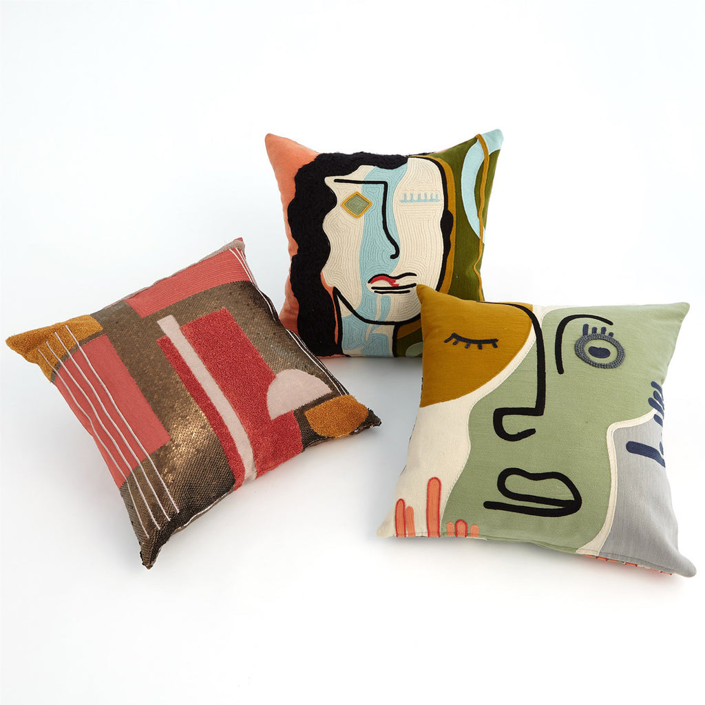 Inspired by the beauty of Veronica Lake, The Global Views Veronica Pillow is embroidered, handcrafted and color-blocked with bead accents. It's made by different embroidery techniques: chain stitch embroidery and appliqued acrylic yarns by using a hand guided embroidery machine to get the hair look and bead work. Pillow insert is 95% duck feather down, 5% feather down.