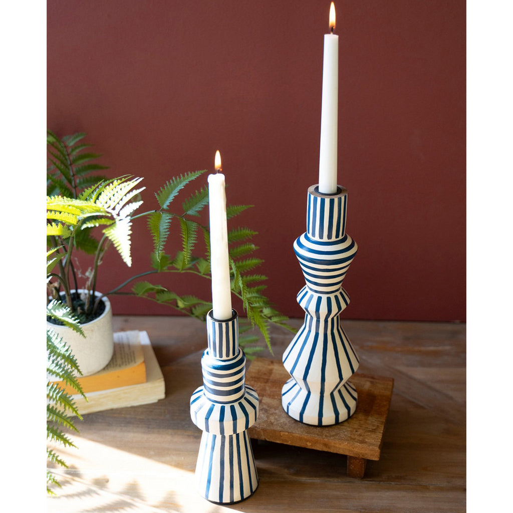 Hand-Painted Wooden Taper Candle Holder Set of 2
