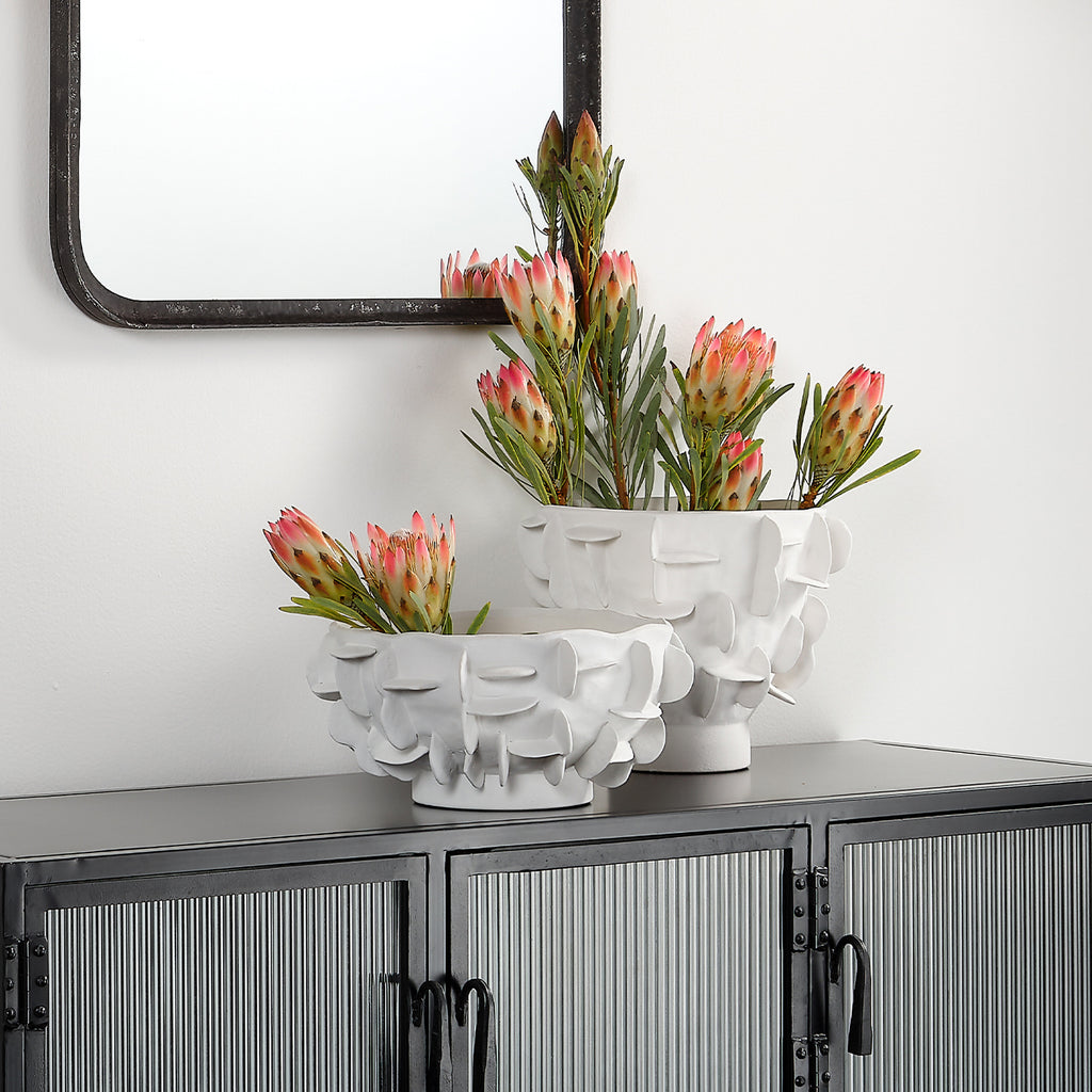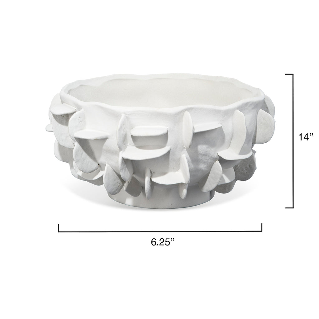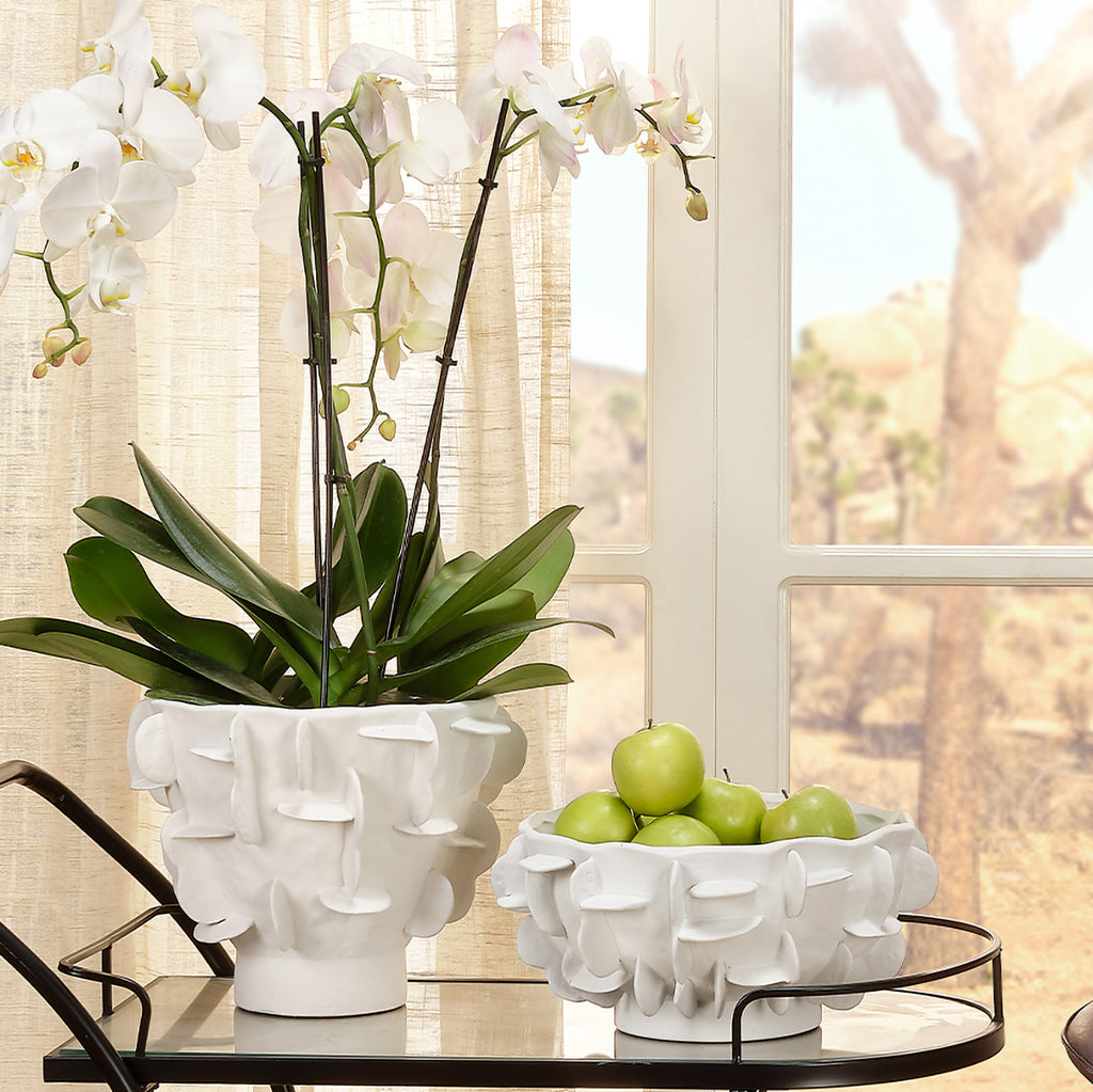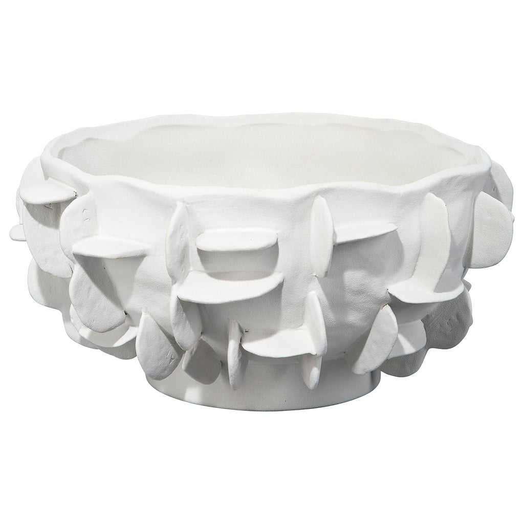 Beautifully handcrafted of fine ceramic, the surface of this bowl is emblazoned with hand-formed ceramic paillettes. A sophisticated, sculptural vessel that can be customized with your favorite filler or shown off as is, try displaying with other ceramic vessels in the same color for a designer inspired grouping!