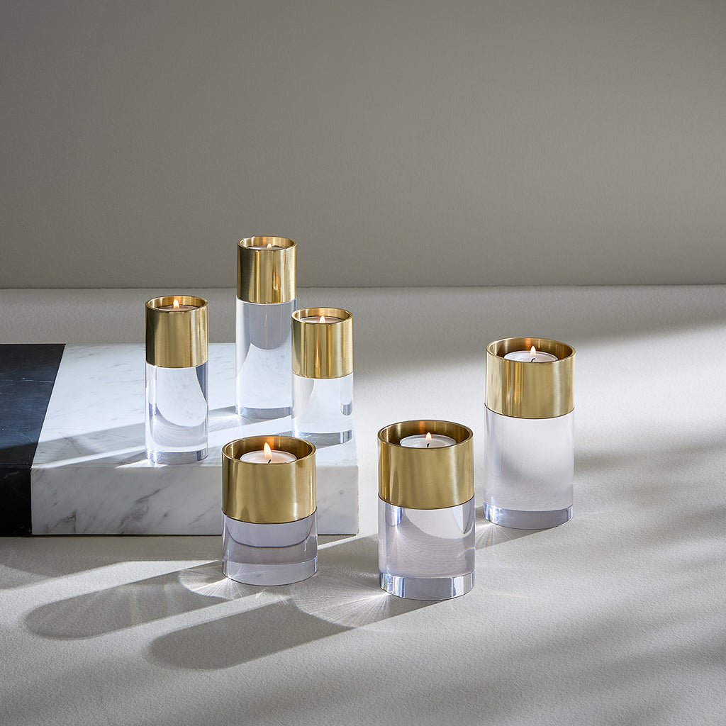 Our Jacques Candle Holder Set is the perfect blend of simplicity and glamour, modern and traditional. Featuring solid acrylic bases accented with polished brass tops. Available in a chic clear or a bold primary colorway for a modern glow to match any mood.