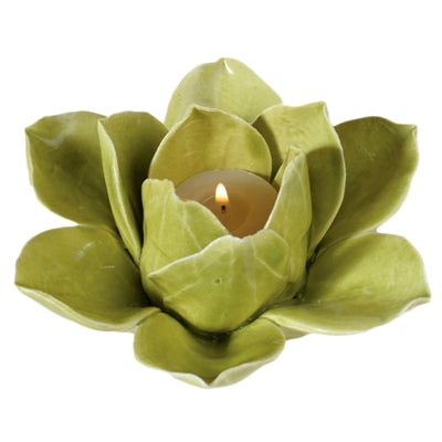 Lotus Tea Light Holders are true works of art. Each lovely, simple flower is hand-crafted by HomArt artisans; each petal, hand-formed. Then each ceramic piece is given a hand-applied color glaze and a carefully crackled finish. So while they are the same, no two are exactly alike. These versatile tea light holders fit any décor—they are an elegant and sophisticated decoration in a formal setting or will act as a festive, fun accent for casual settings, indoors or in the garden. Offered in an array of appealing soft colors, choose one or several, as they all coordinate beautifully with each other and with many styles of decoration. They are thoughtful, affordable gifts, sure to be appreciated, and are also a great addition to a gift basket for any occasion. Designed to hold a single tea light. The small cracks on the base are normal during firing in the kiln.