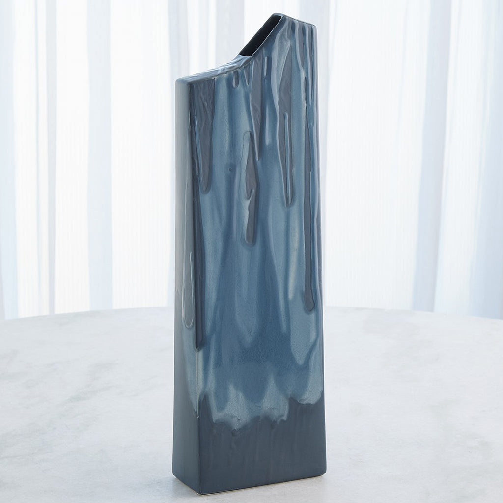 The Column Splash Vases are crafted from slip-molded Portuguese ceramic in a rich water tone, featuring a stunning blue-colored reactive glaze. Variances in the finishes arise naturally from the reactive glazes and handmade craftsmanship. We celebrate these differences, as they give each piece its unique character, making them truly one-of-a-kind creations.