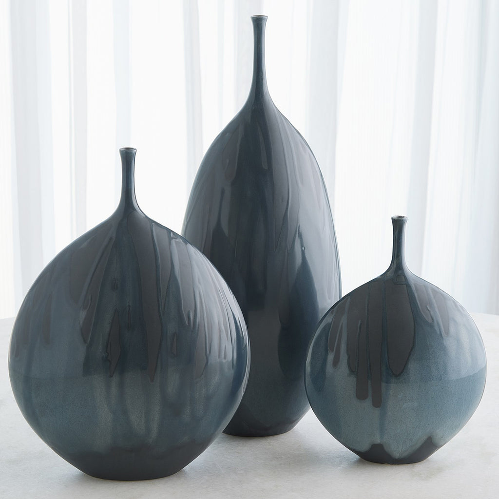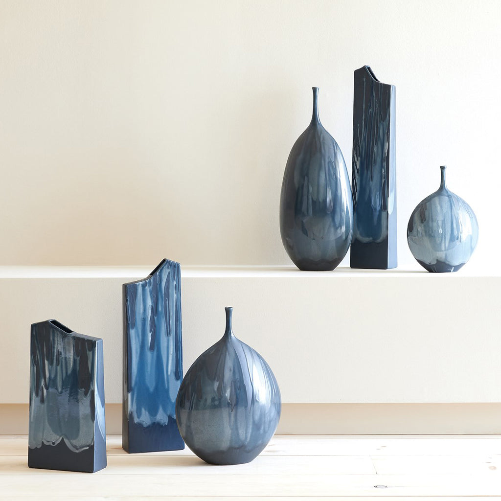 The Splash Bottles are crafted from slip-molded Portuguese ceramic in a rich water tone, featuring a stunning blue-colored reactive glaze. Variances in the finishes arise naturally from the reactive glazes and handmade craftsmanship. We celebrate these differences, as they give each piece its unique character, making them truly one-of-a-kind creations.