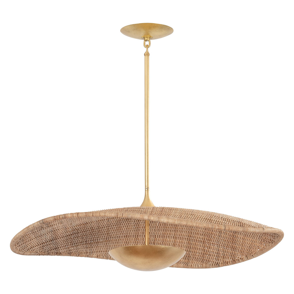 Renowned for built-to-last quality with a timeless feel, Hudson Valley offers a modern lighting collection with elegant touches, recalling vintage inspiration. Modern meets rustic in this nautical-inspired flush mount. A dialogue between form and material, this nature-inspired design undulates with charm. The interplay of woven rattan and fluid metalwork creates a dynamic and airy suspension overhead. Accented by a warm Vintage Gold Leaf finish, the detailed craftwork and textural finish present a distinctive, organic look. Illuminated by LED, Shiloh is available in two pendant sizes. *Due to the one-of-a-kind nature of the medium, exact colors and patterns may vary slightly from the image shown.
