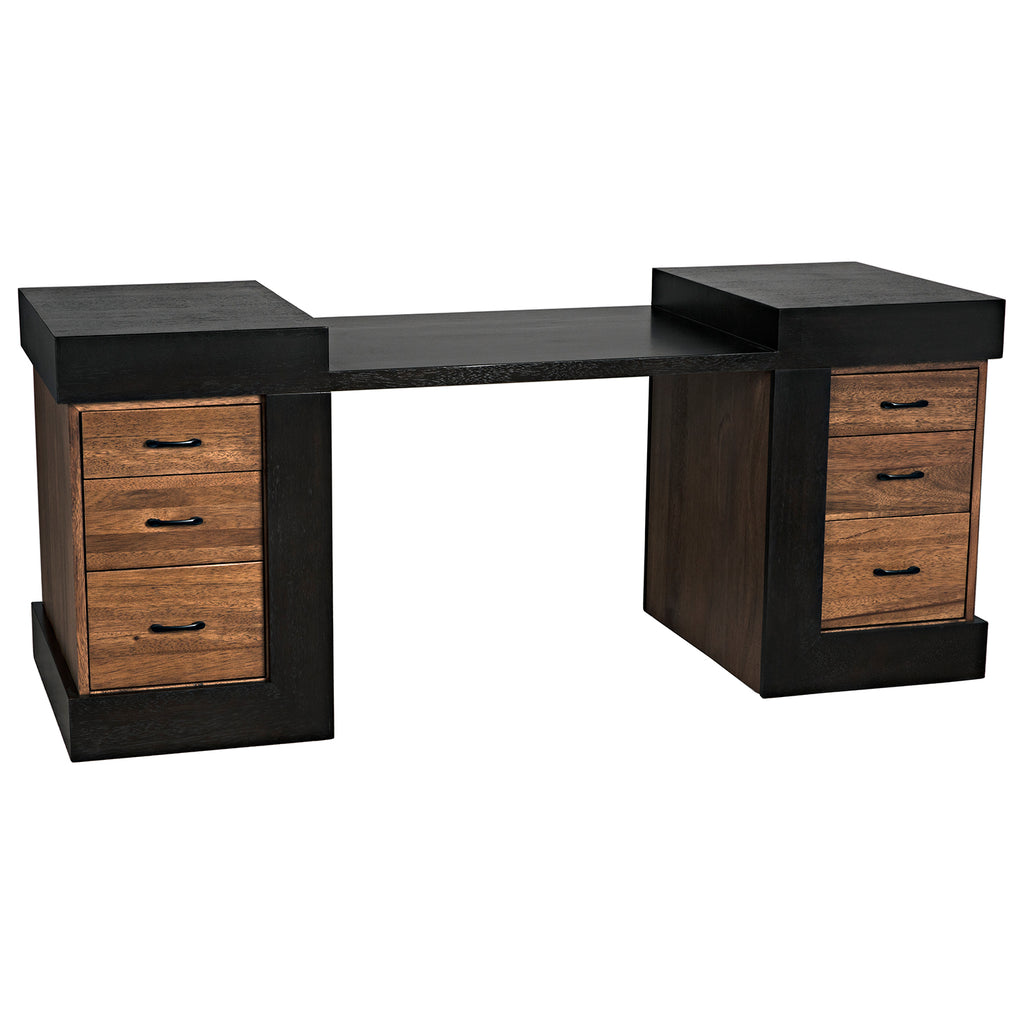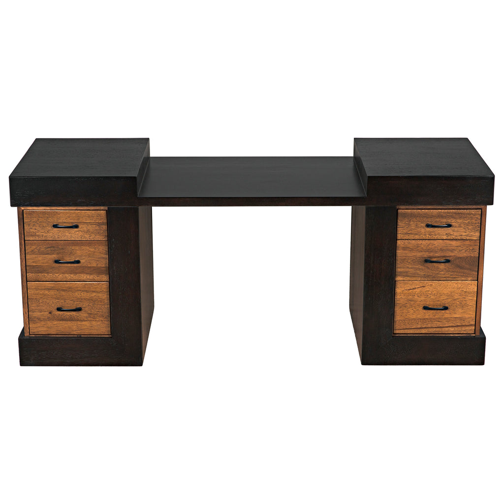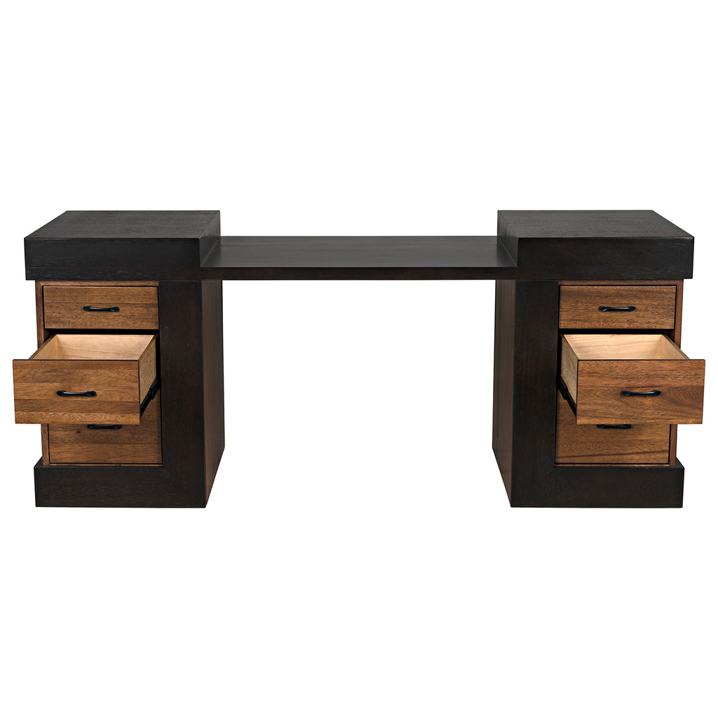 The essence of elegance, this six-drawered walnut desk is finished by in a rich Dark walnut finish. Its lines are graced with carved details enhanced with ebony accents that create an ideal contrast. Entirely artisan crafted, this is desk perfect for any distinguished decor.