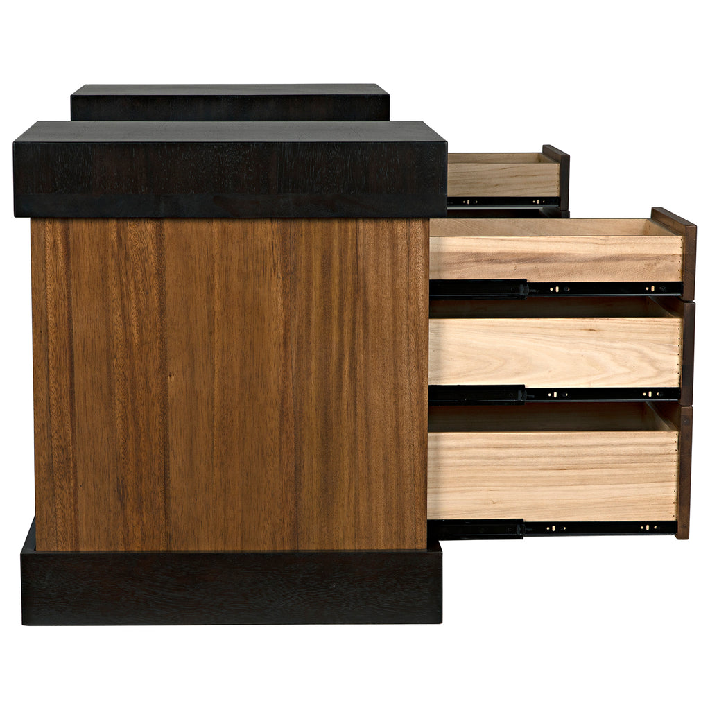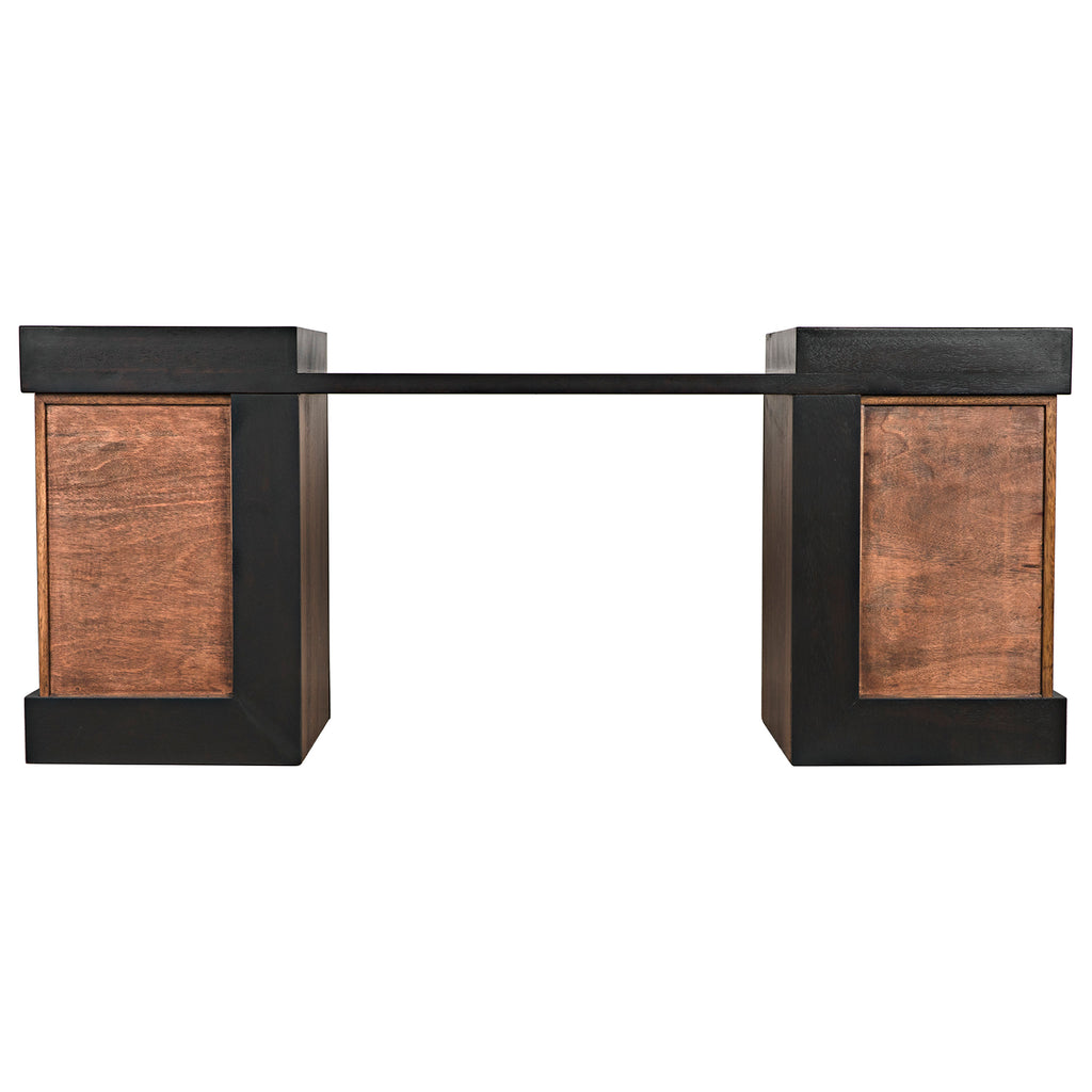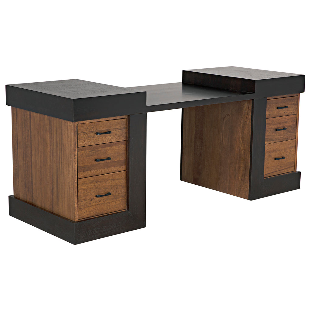 The essence of elegance, this six-drawered walnut desk is finished by in a rich Dark walnut finish. Its lines are graced with carved details enhanced with ebony accents that create an ideal contrast. Entirely artisan crafted, this is desk perfect for any distinguished decor.