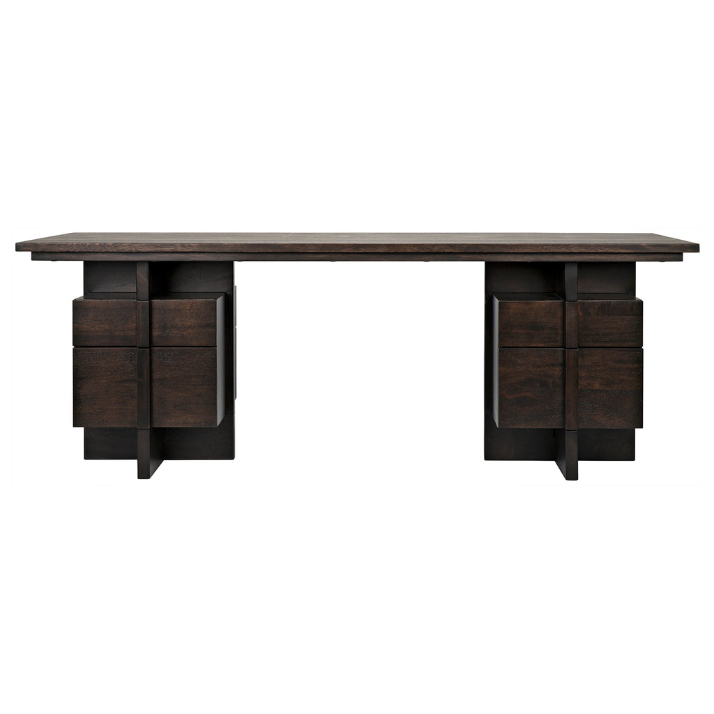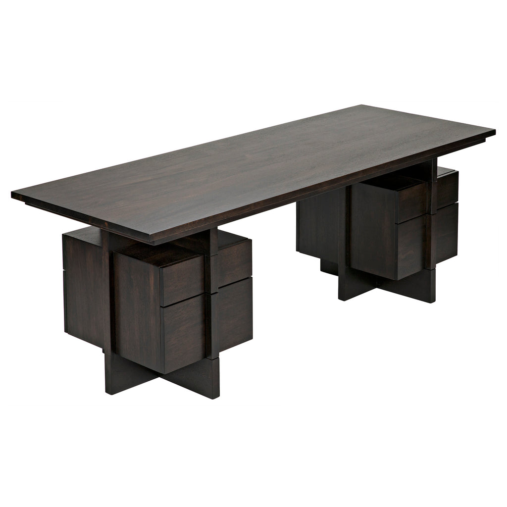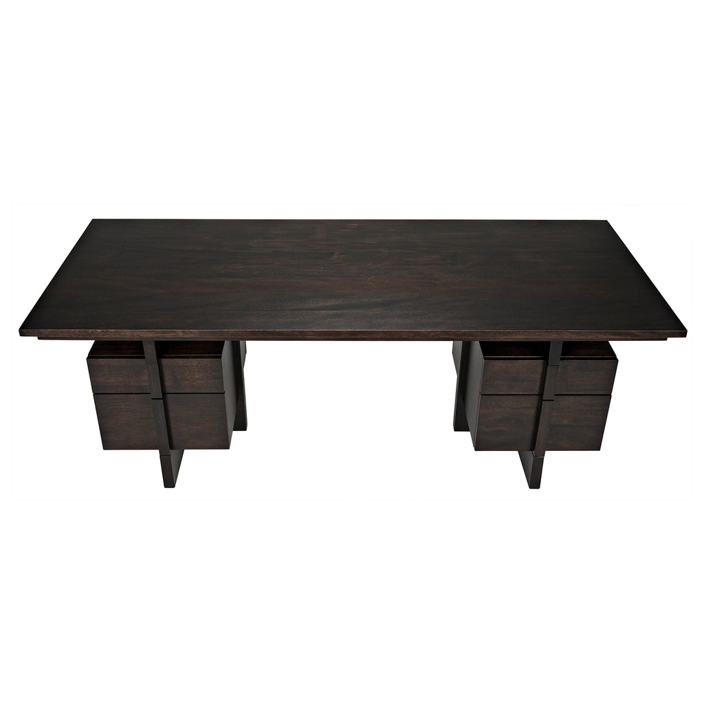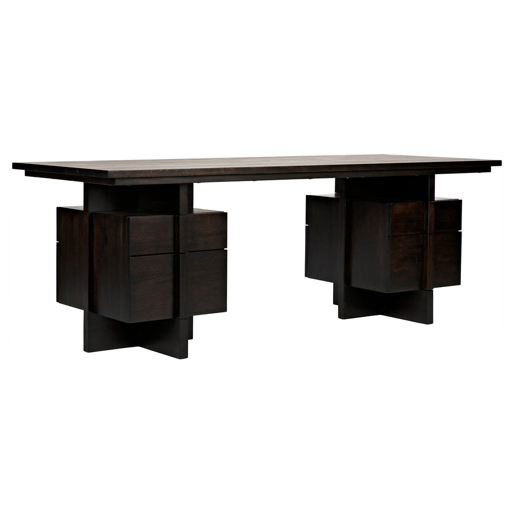 This impressive desk has a handsome design, strong contemporary lines, and modern proportions. Meant to anchor a room, it has been expertly handcrafted of walnut with an ebony finish, and its four drawers open smoothly on metal runners.