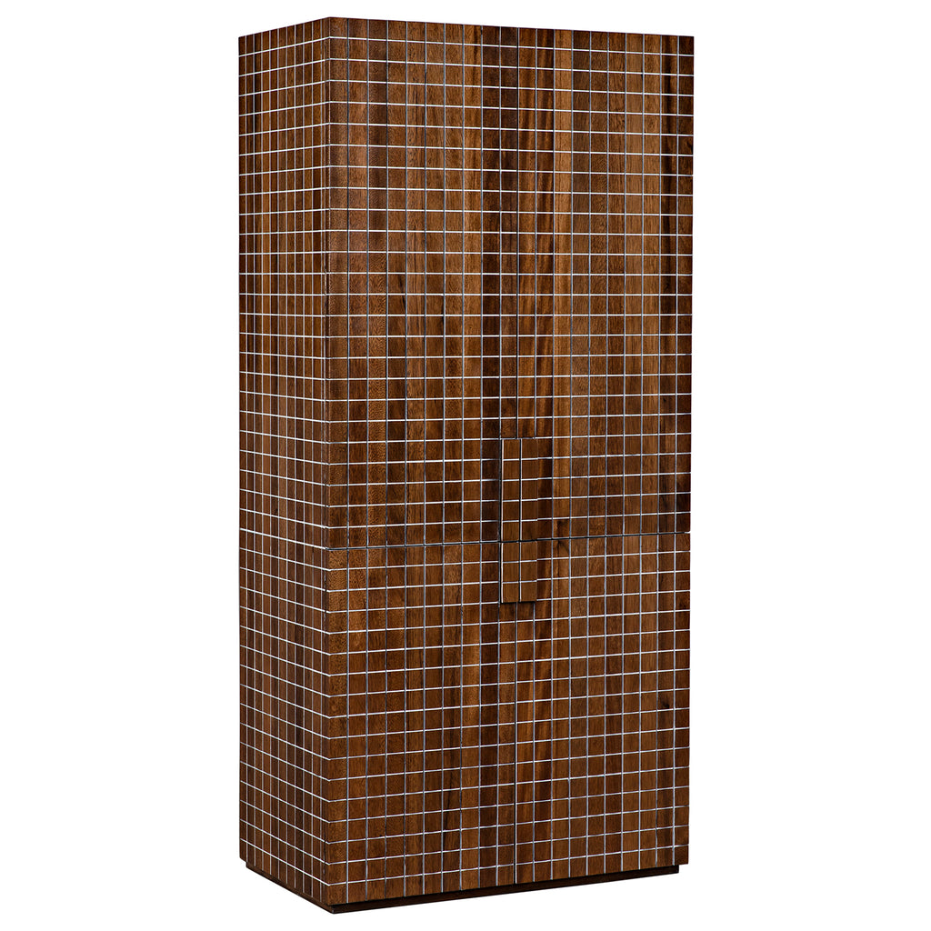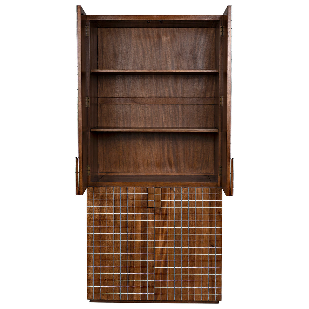 A beautifully hand-crafted walnut hutch whose exquisite hand-carved details and generous size make it an excellent focal point for any modern decor.