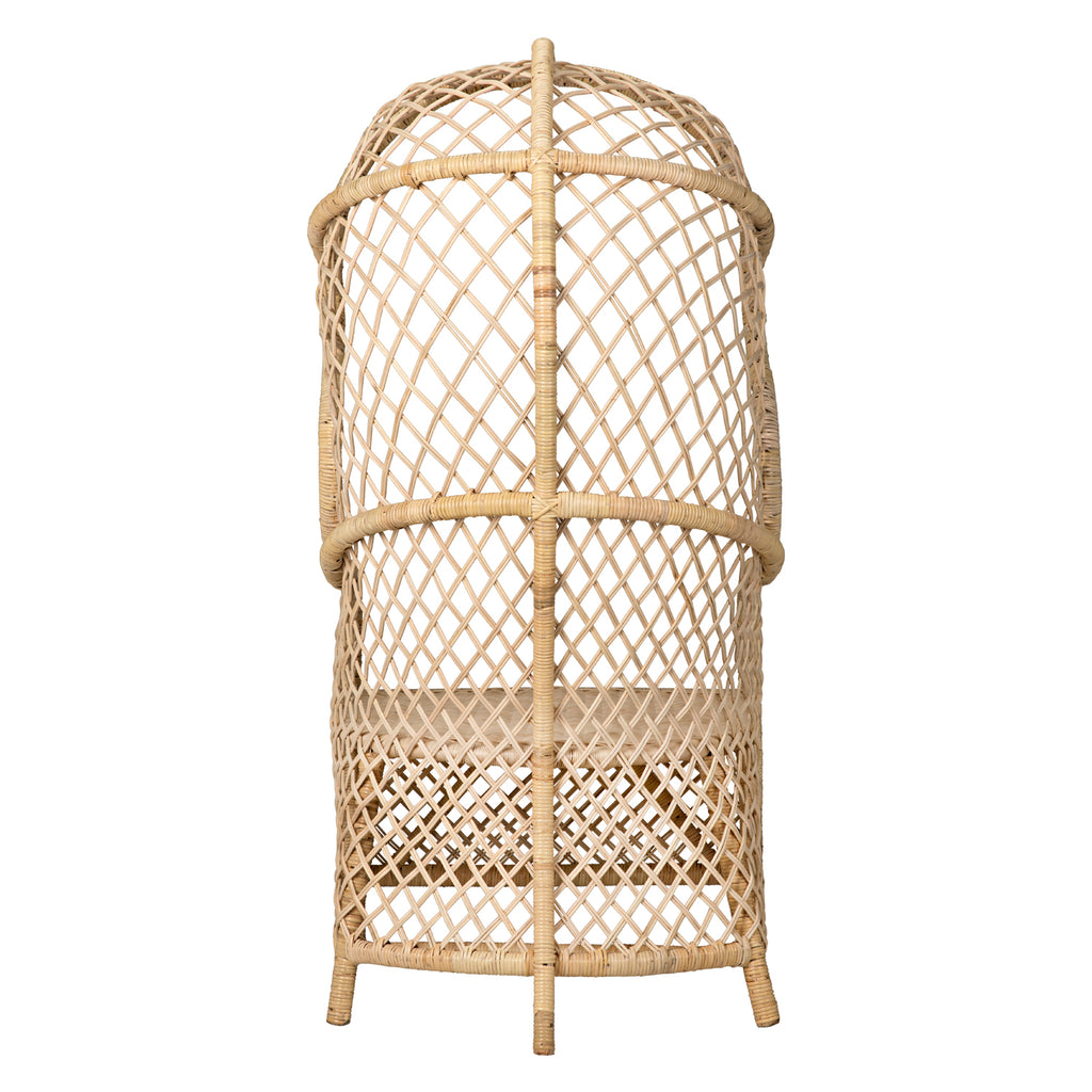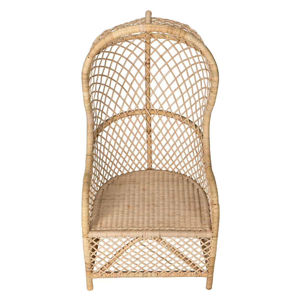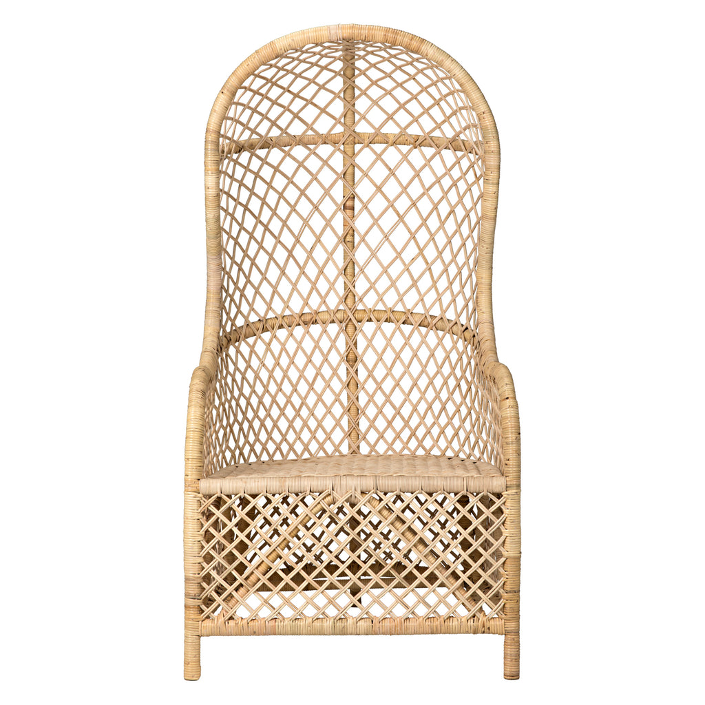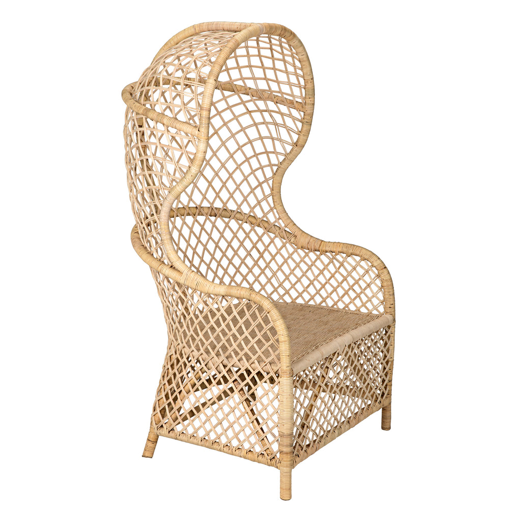 Seat guests in style with a sophisticated update from Noir to your living room or bedroom. Chic yet comfortable, this chair's unique structure gives any space a striking statement. A modern take on a hooded cane back chair, our version cradles the body in hand-woven natural rattan and birch. Perfect for porch or sunroom, just add your choice of chilled beverage to sip!