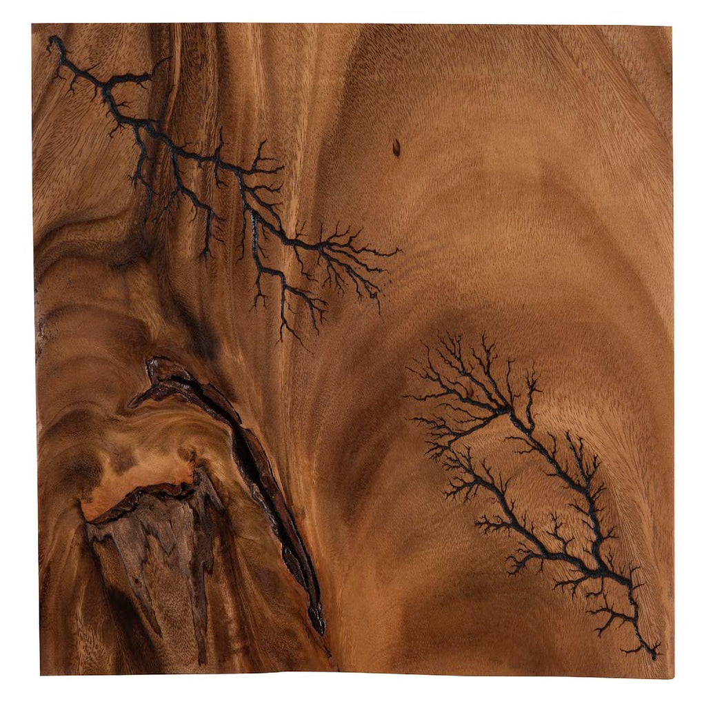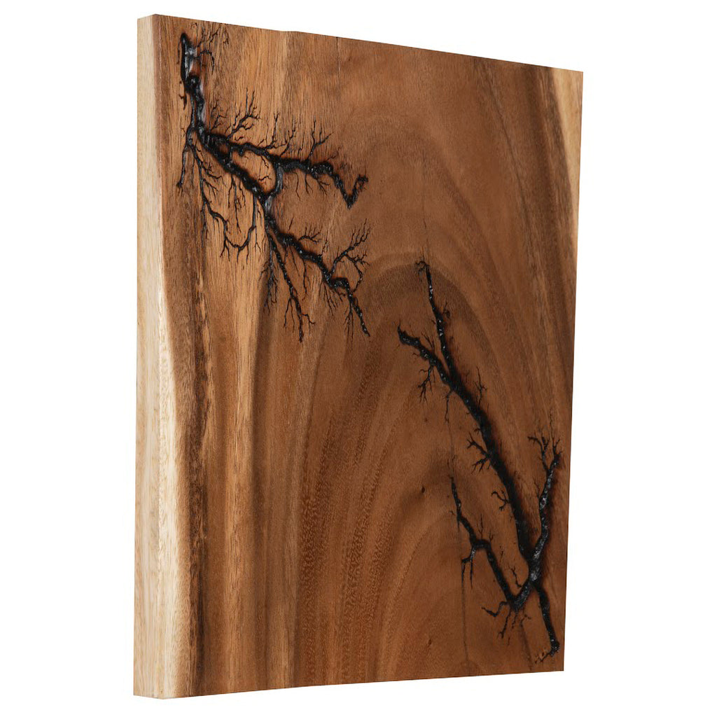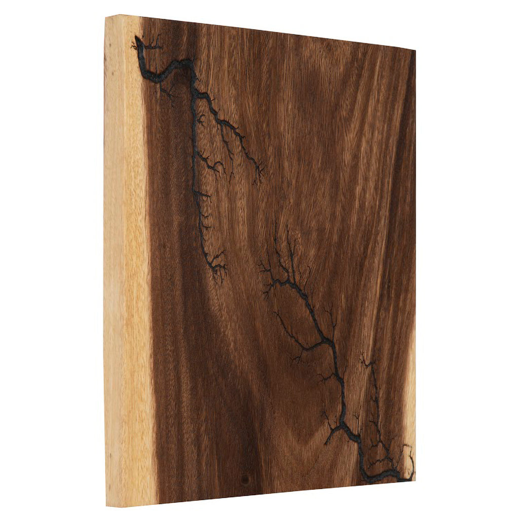 Though it is widely known that lightning never strikes twice, it has sizzled several times to create the Lightning Wall Tile. Made of chamcha wood, the tile has markings that are created when an electrode is applied to its surface and the fire follows natural markings in the tree's DNA. Each of these pieces of art are unique because every specimen of wood has its own veining that invites the fire to follow it along.