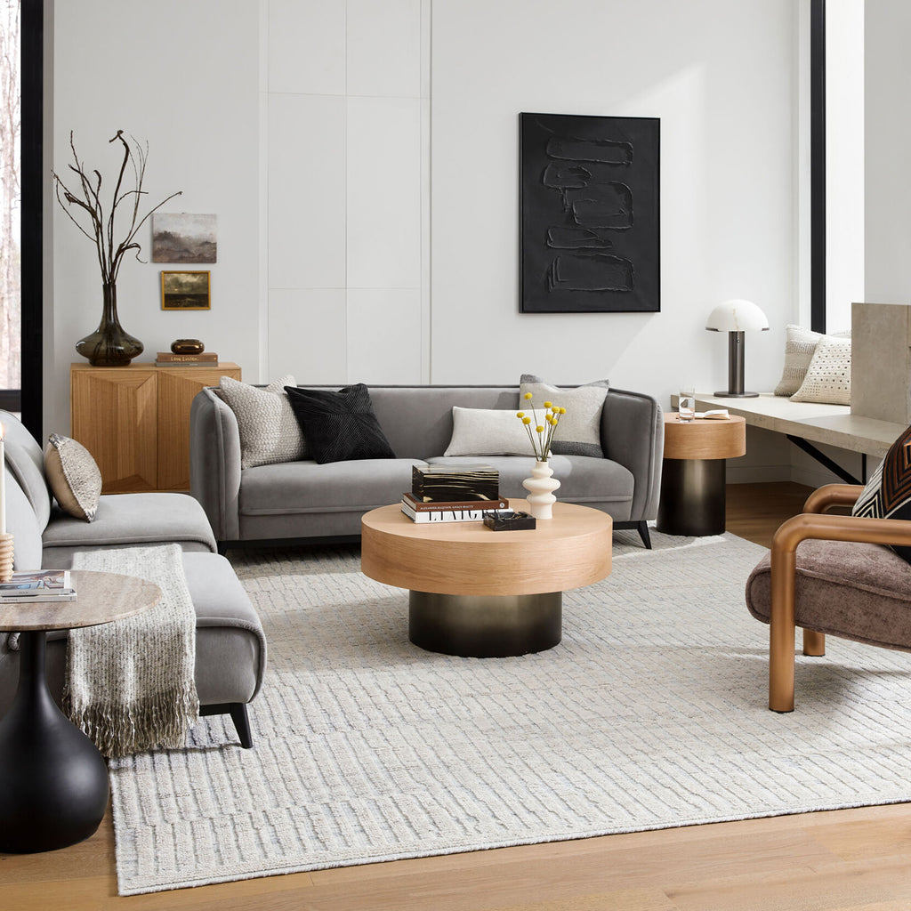 Samples may be available for wood/metal finishes, fabric or rugs.