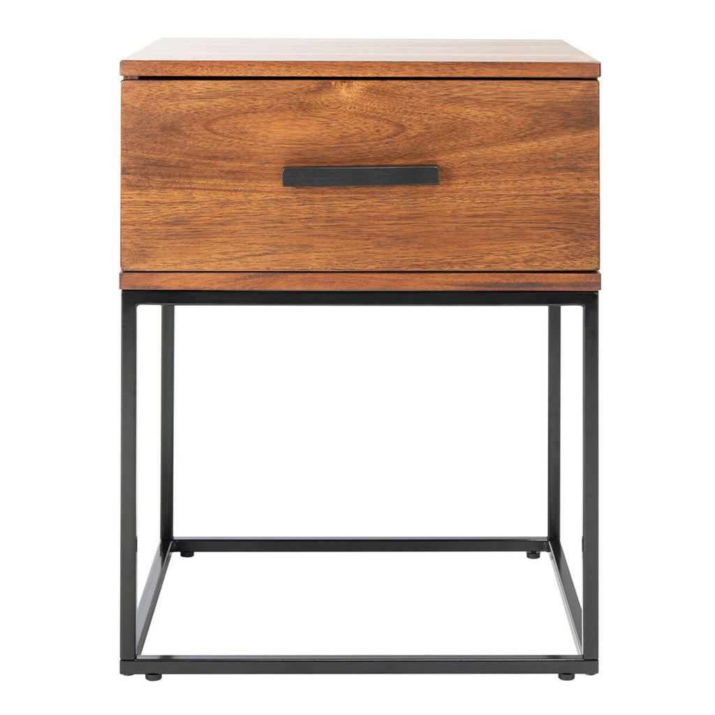 Elevate your bedroom décor with this beautifully bold nightstand. The open black metal Parson’s style frame provides stunning visual depth and serves as an artistic counterpoint to the organic wood grain flowing over its brown mahogany drawer, instantly upgrading any interior.