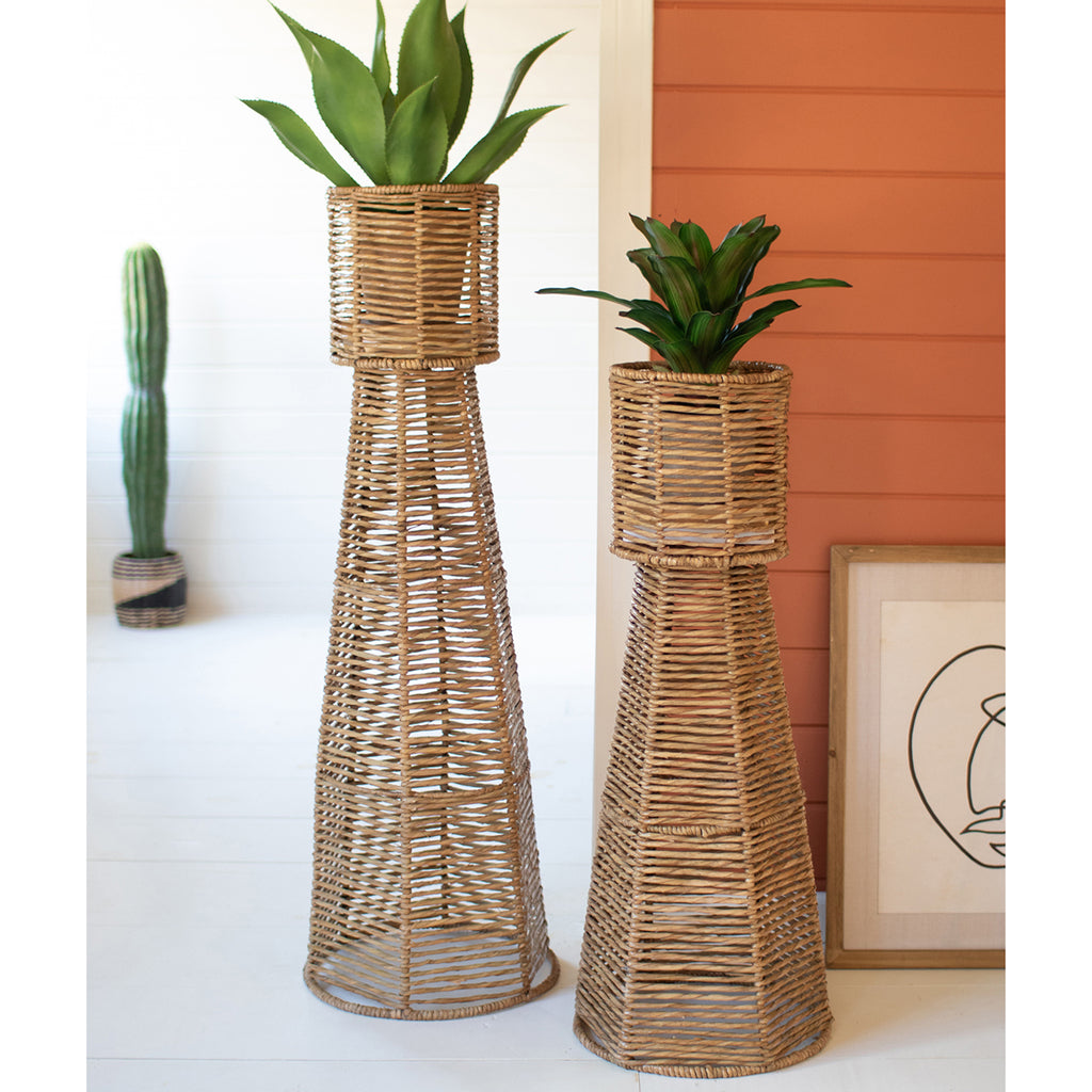 Crafted from natural seagrass, this Set of 2 planter towers will elEVAte your garden! Adorn this duo with palms and other greeneries to spruce up your space.