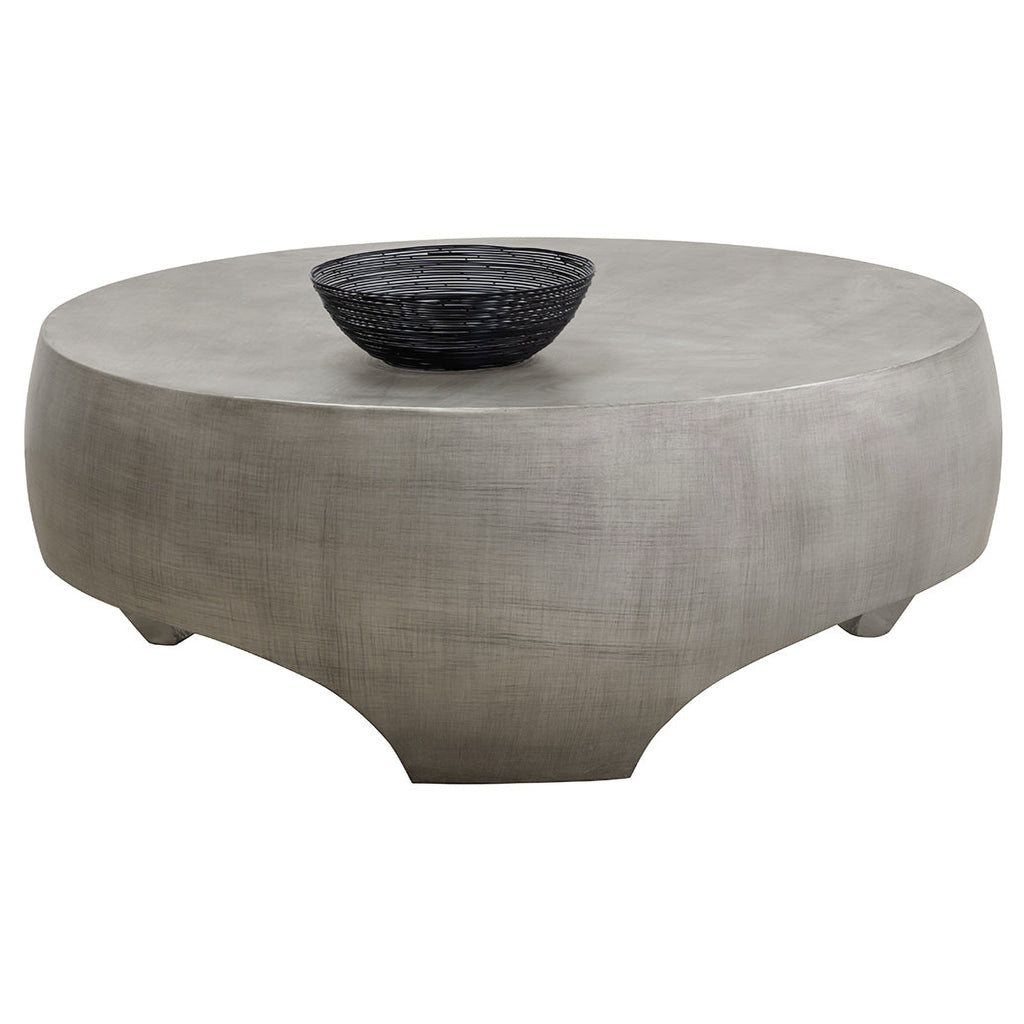 The Tarsus Coffee Table exudes industrial chic with its metal look and sculpted design. Crafted from glass fibre-reinforced concrete with an antique bronze or pewter finish. A striking piece from all angles, this table features open arches at the bottom. Rubber felt protectors included.