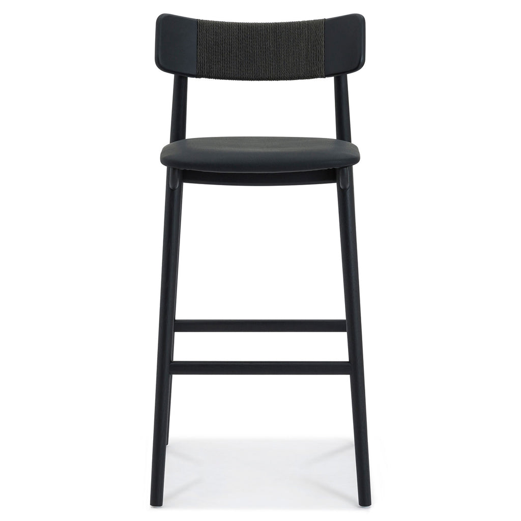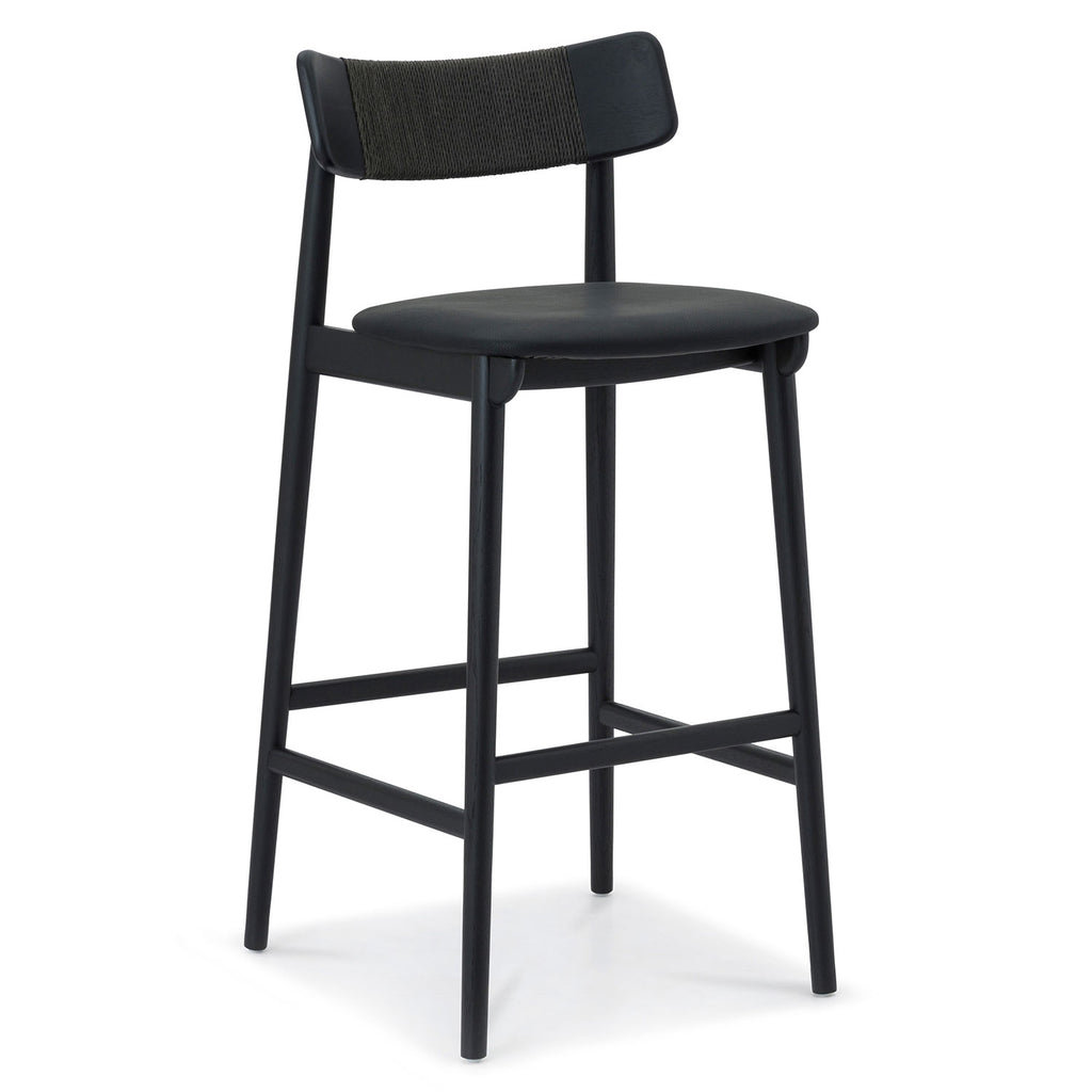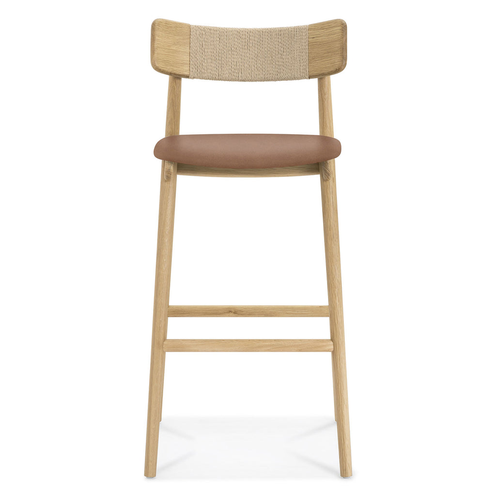 Inspired by the honest expression of material found in Scandinavian design, the Union Home Converse barstools at once simple and elegant. This versatile barstools features a solid, FSC certified Oak frame that supports an upholstered leather seat. The softly curving back rest is complemented by an intricately woven Danish paper cord detail.