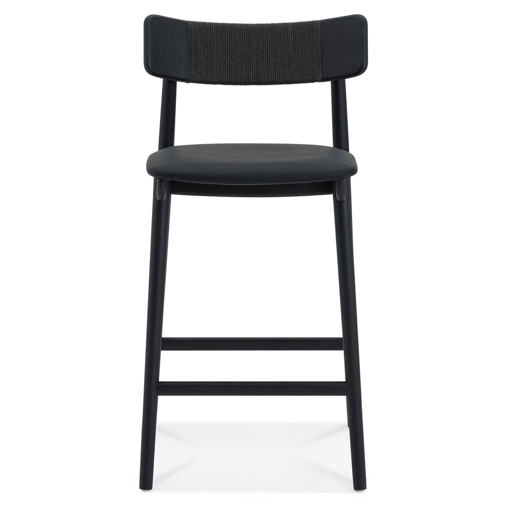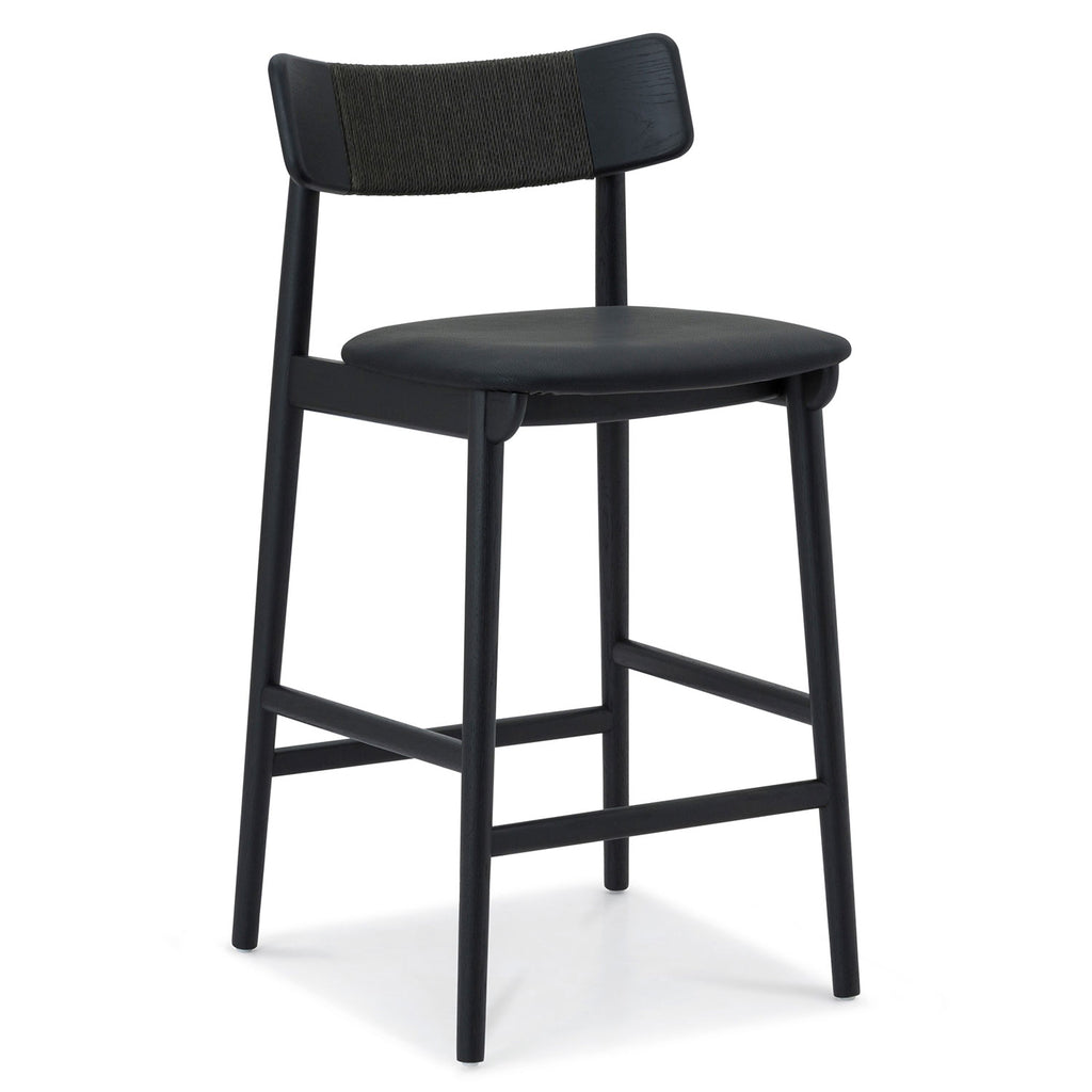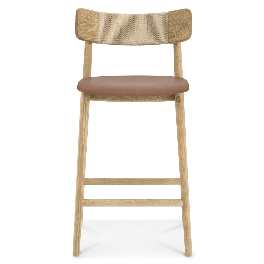 Inspired by the honest expression of material found in Scandinavian design, the Union Home Converse counter stools at once simple and elegant. This versatile counter stools features a solid, FSC certified Oak frame that supports an upholstered leather seat. The softly curving back rest is complemented by an intricately woven Danish paper cord detail.