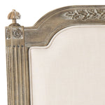 The luxuriant furnishings in the boudoir of a famous French actress inspired this headboard. Finished in a fine antique beige, it’s crafted using rustic oak wood to highlight its graceful linen upholstery. Delicate details create its heirloom style.
