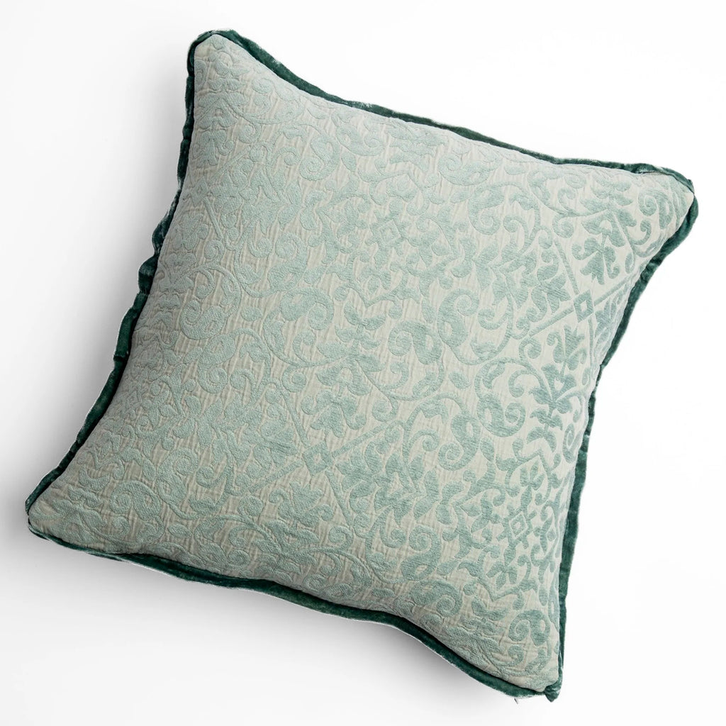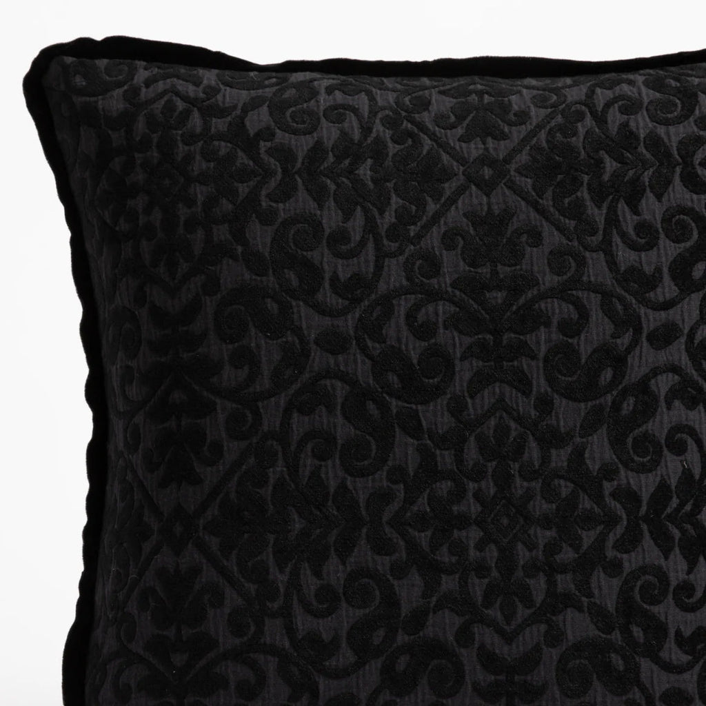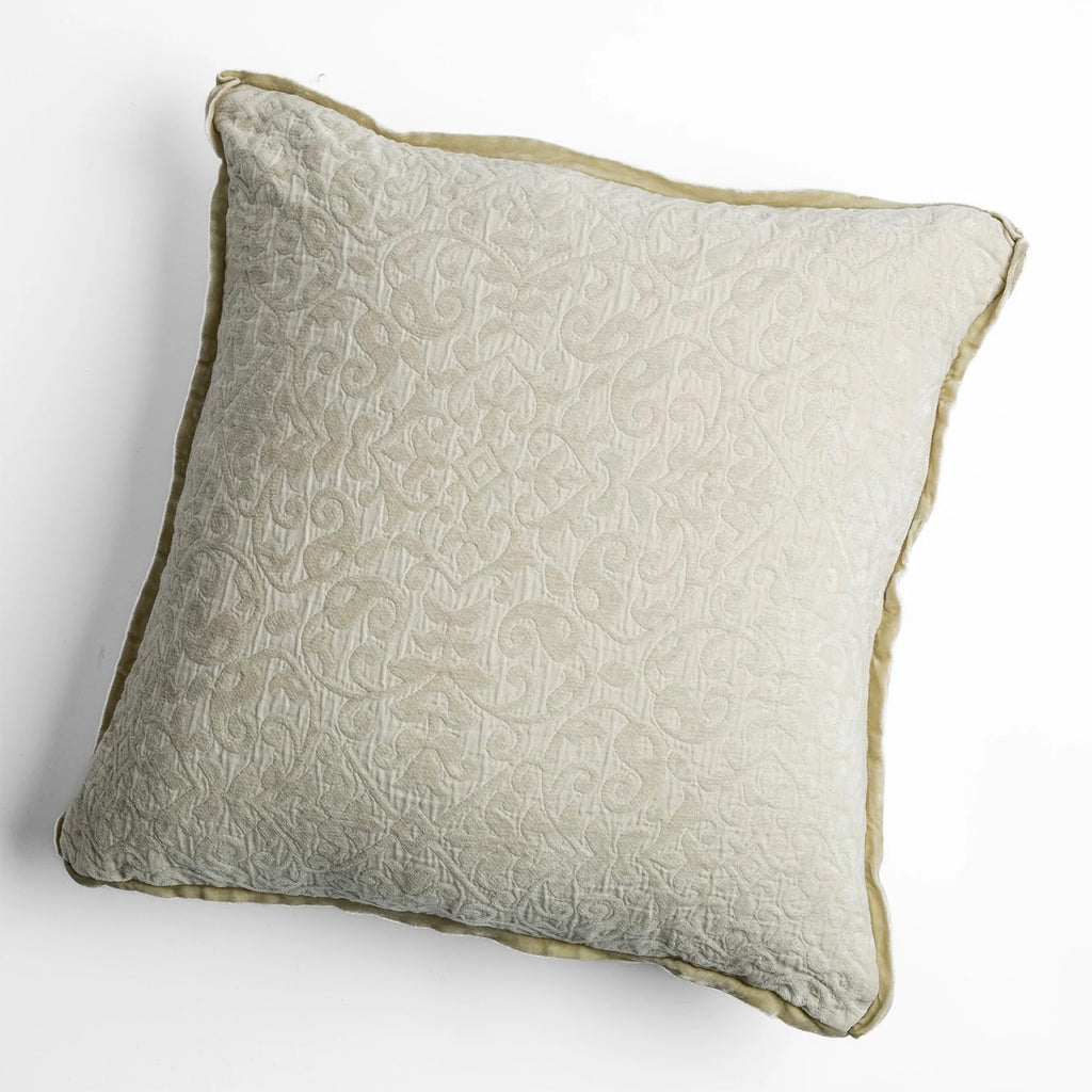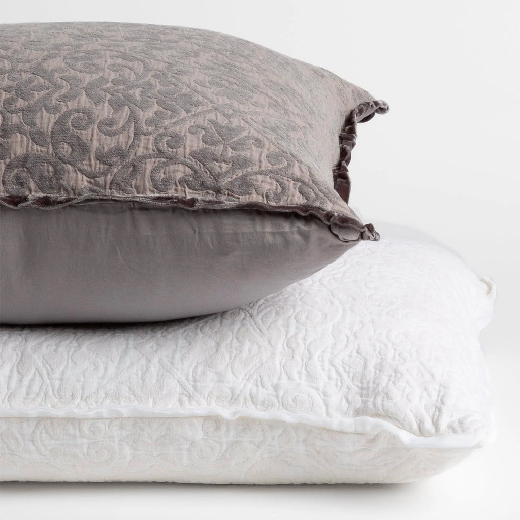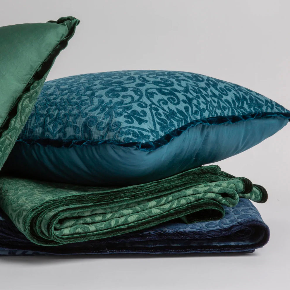 A delicate, flat silk velvet piping frames the Bella Notte Vienna Throw Pillows, the perfect combination to their textured, velvety pattern. Available in two styles and in all of our hand-mixed tones, the pattern reveals itself in darker tones while remaining subtle and picturesque in lighter hues; the 18x18 pillow with its cotton sateen back adds additional luster and intrigue. These couture cushions work on sofas, on entryway benches and anywhere you wish to add a touch of flair.