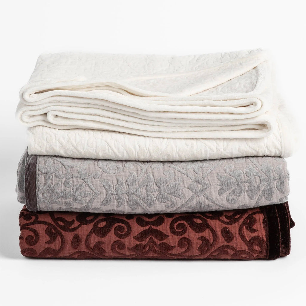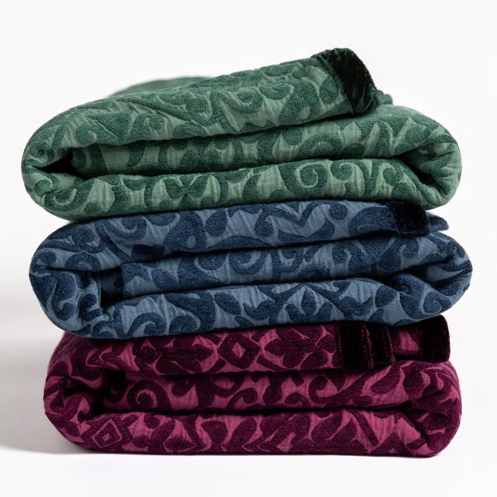 The Vienna Blanket is the perfect blanket for your sofa or favorite armchair. This single-layer blanket is reversible — its back is as beautiful as the front. Trimmed in rich silk velvet and dyed in all of our hand-mixed tones, this blanket adds visual appeal to any space.