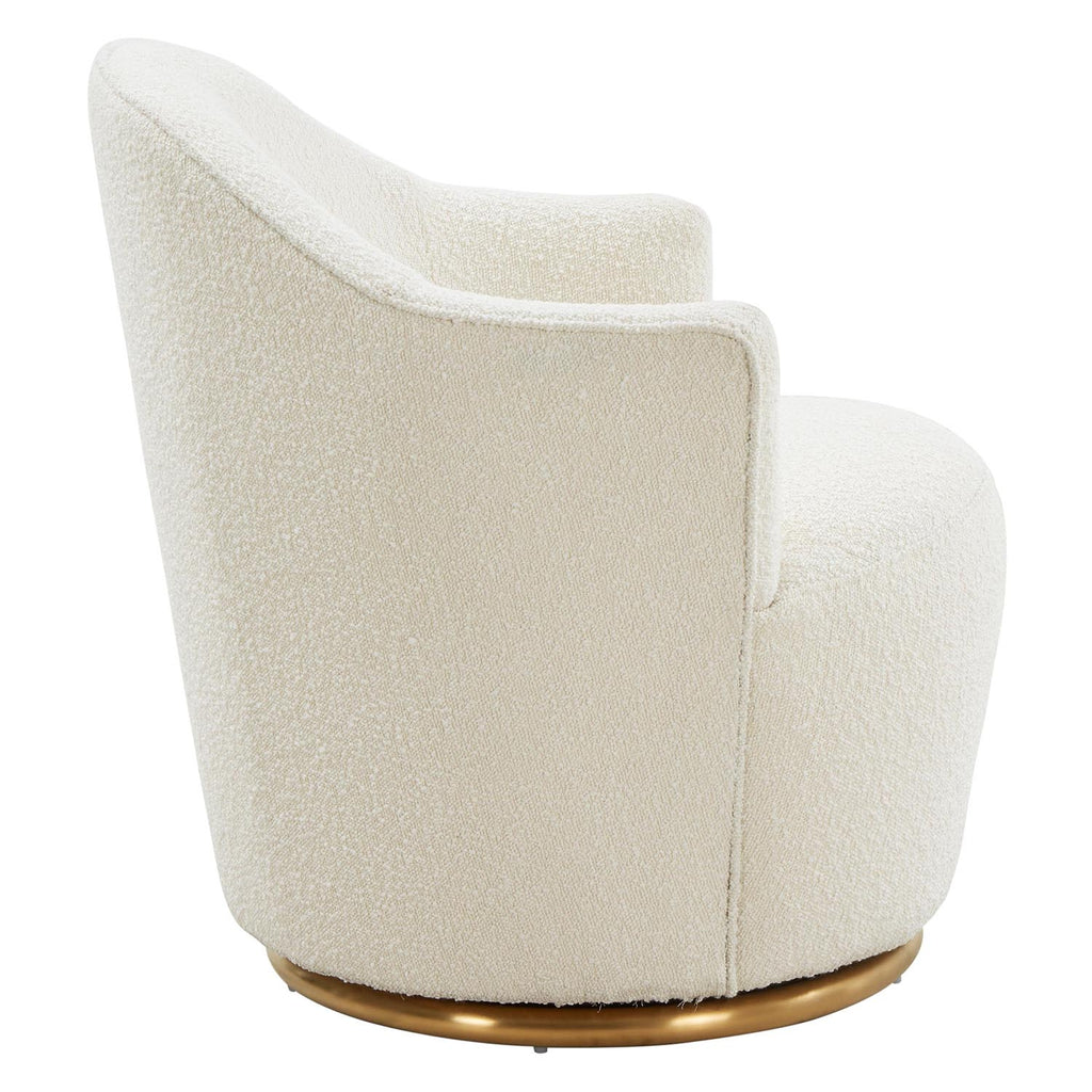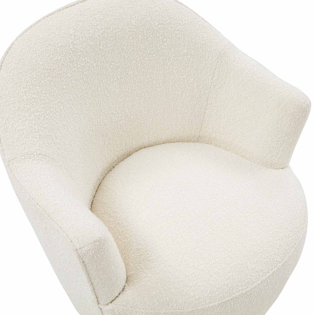 Glamorous and versatile, the Catrina swivel chair was designed to impress. Its cozy boucle upholstery and plush fiber-wrapped foam fill offer supreme comfort, while the solid wood frame and stainless steel base provide a sturdy foundation. Use this eye-catcher alone or in a set to add a pop of style to any space.